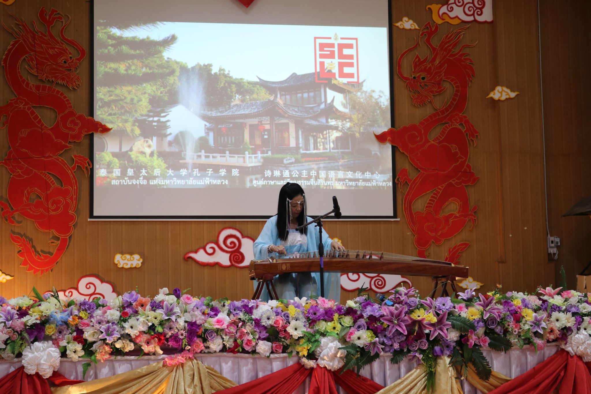 皇太后大学孔子学院公派教师谭红老师带来古筝表演《高山流水》