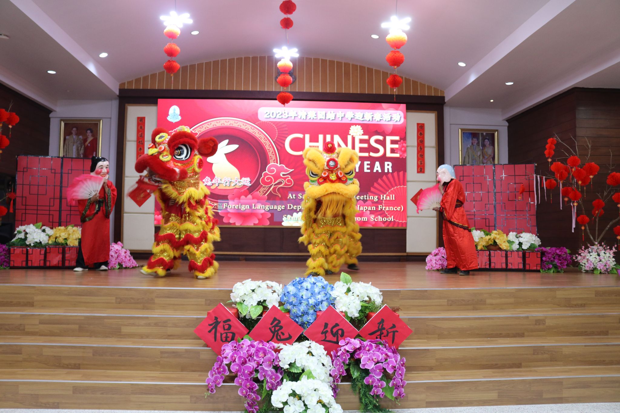 当地时间2023年1月24日,皇太后大学孔子学院助力清莱市团结中学成功举办2023年欢庆新春文化活动。皇太后大学孔子学院院长张桃携教师陈蕾、袁沛云、欧阳希、张雯钰共赴团结中学参加此次新春联欢活动。