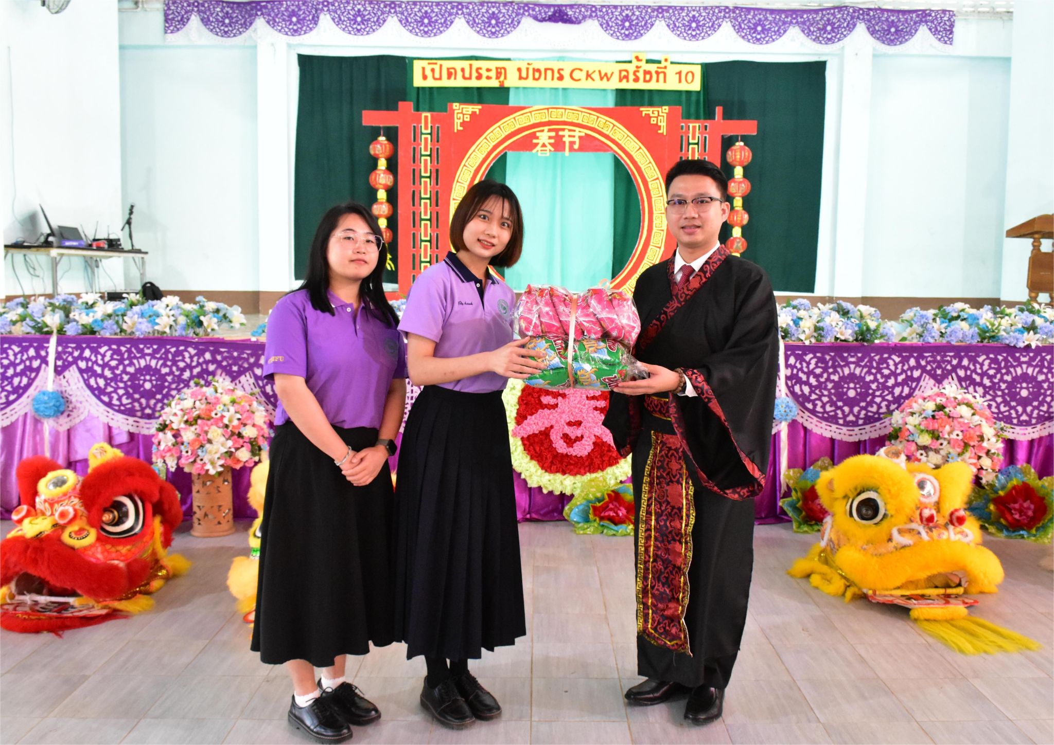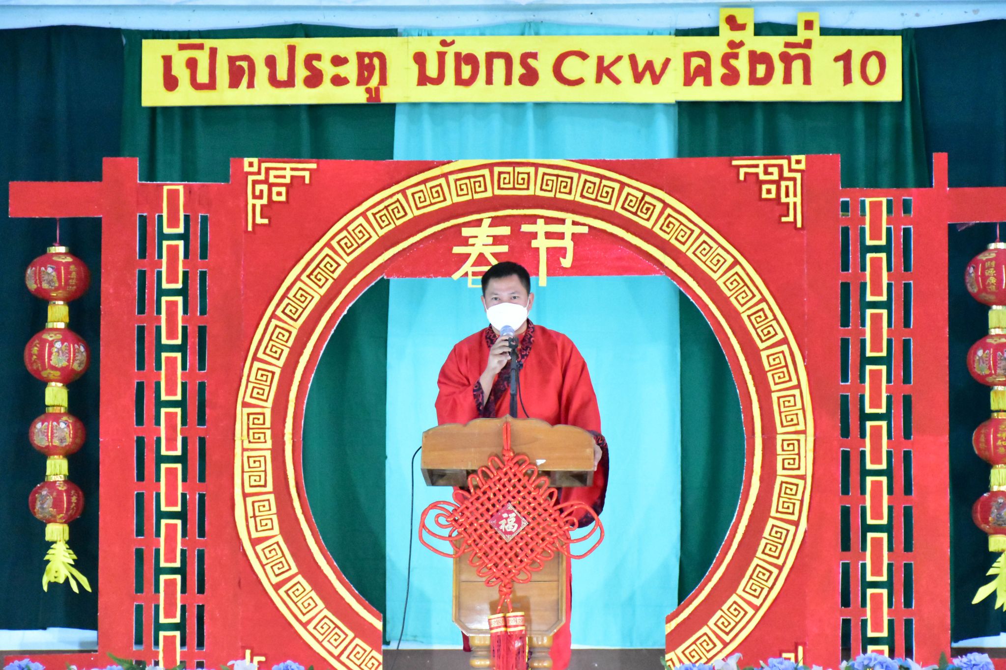 上午10时,在一片喜气洋洋的节日欢庆氛围中,活动正式拉开帷幕。清孔中学校长Mr.worrawat kitiwong致新春贺词。他首先对孔院老师们的到来表示了热烈欢迎,随之感慨到,清孔中学庆祝中国新春文化活动已经来到了第十个年头,这些年活动的成功举办离不开孔院对学校的帮助,希望在新的一年里双方能够为清孔中学的汉语学子带来更多精彩纷呈的中国文化体验活动。随后他用泰语向在场的观众绘声绘色地讲述了“年”的由来,鼓励学生们积极了解中国文化,认真学好中文。最后,Mr.worrawat kitiwony向在场观众送上了节日祝福,“祝大家身体健康,新年快乐!”并预祝活动圆满成功!