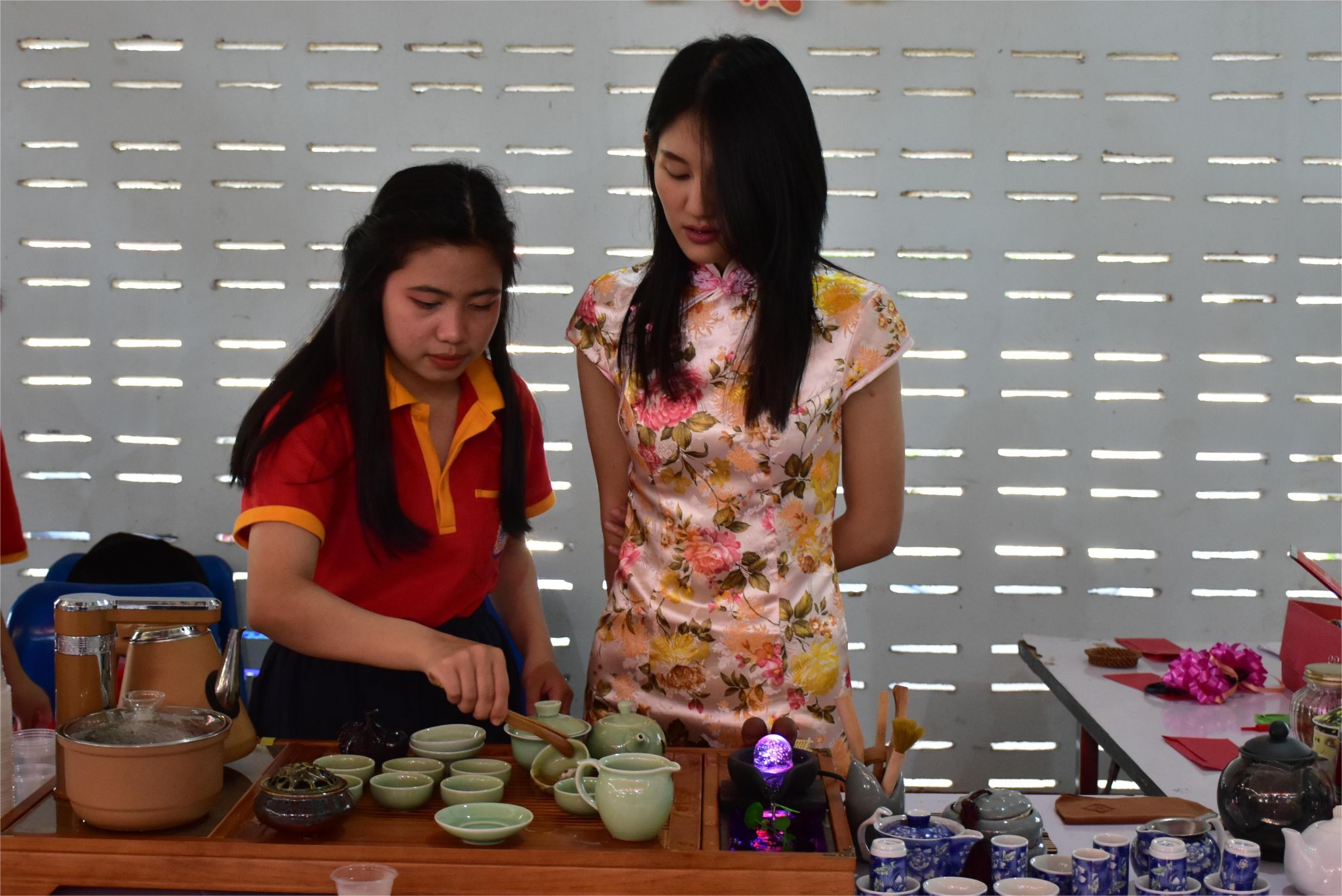 学生体验茶艺文化