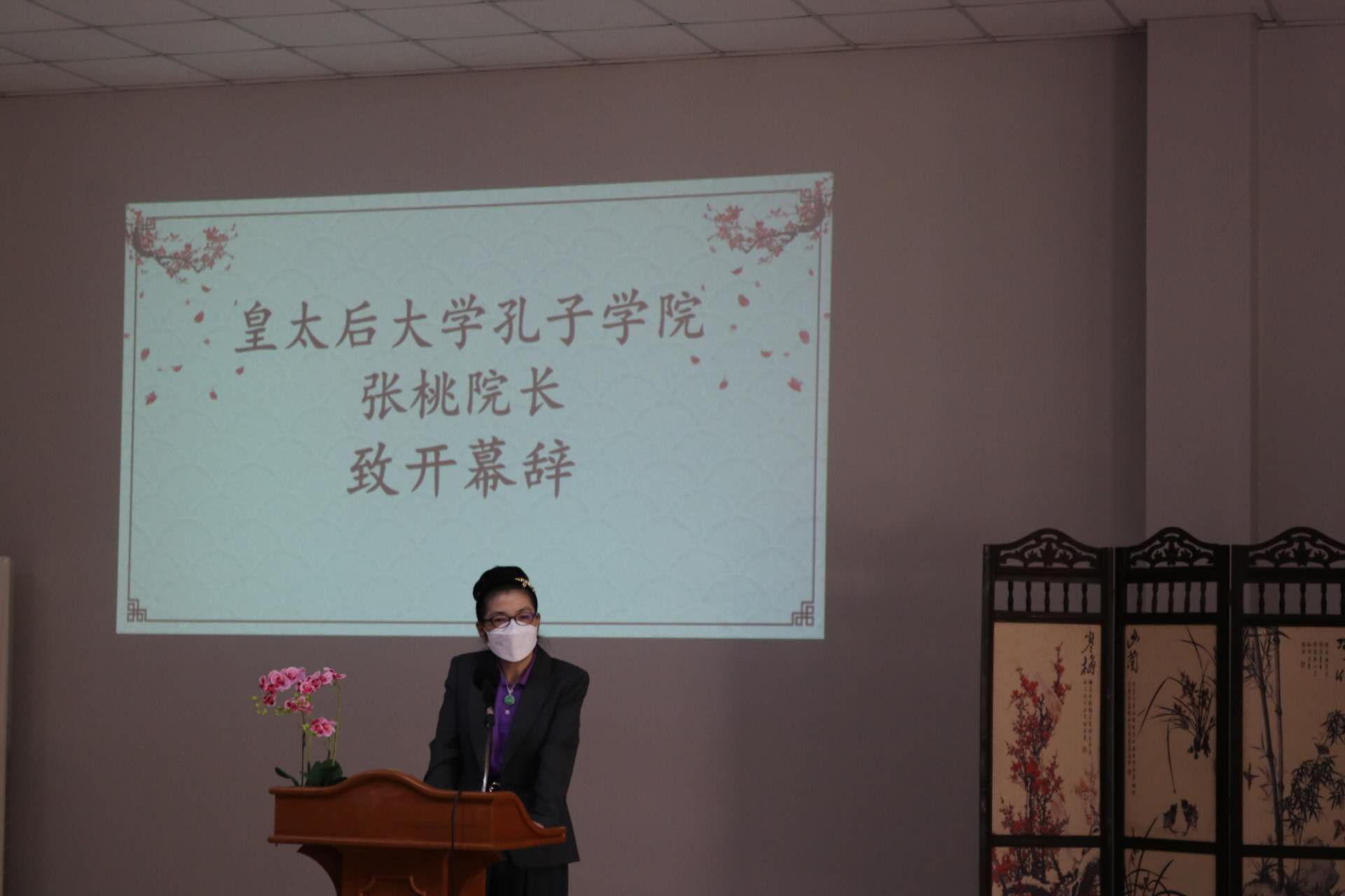 在开营仪式上,全体师生观看孔院的介绍视频,增加了对皇太后孔院的了解、对中国文化的浓厚兴趣。接着张桃院长热情致辞,她欢迎达府中学和远巴保中学师生远道而来,文化交流是沟通心灵的桥梁,希望各位学子们在今天的课程中可以沉浸式感受中国语言和文化的无穷魅力。期待今后孔院和两所中学加强合作,共同助力广大学子。