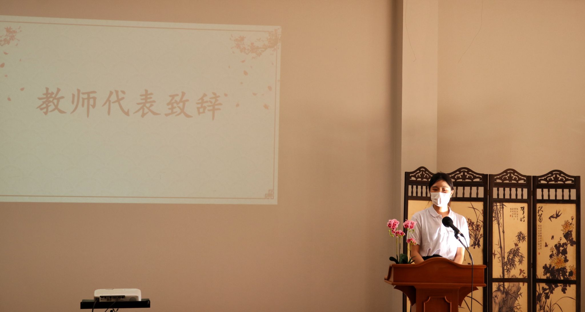 在闭幕式上,达府中学领队教师黄柳玲和远巴保中学领队教师王大保作为教师代表发言,此次活动意义深远,在今天的课程中,学生们收获颇丰,感谢孔子学院各位老师的辛勤付出。希望今后可以和孔院加强联系,学生们也有更多的机会去中国留学。来自远巴保中学的学生代表朱妍彤对孔院院长张桃及全体教师表达感谢,今天丰富多彩的文化体验课程让她们领略到中国语言和文化的魅力,希望今后有更多的机会参加此类活动。