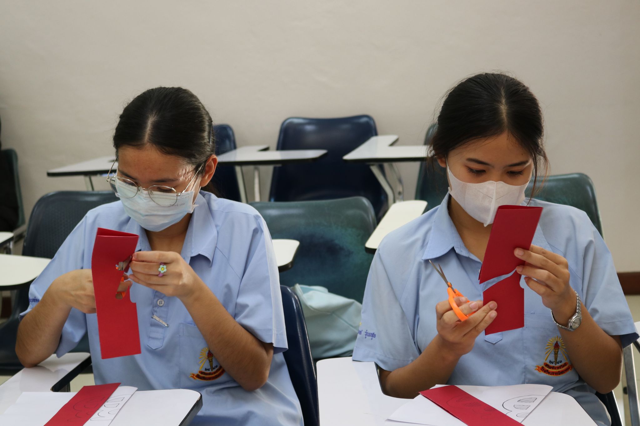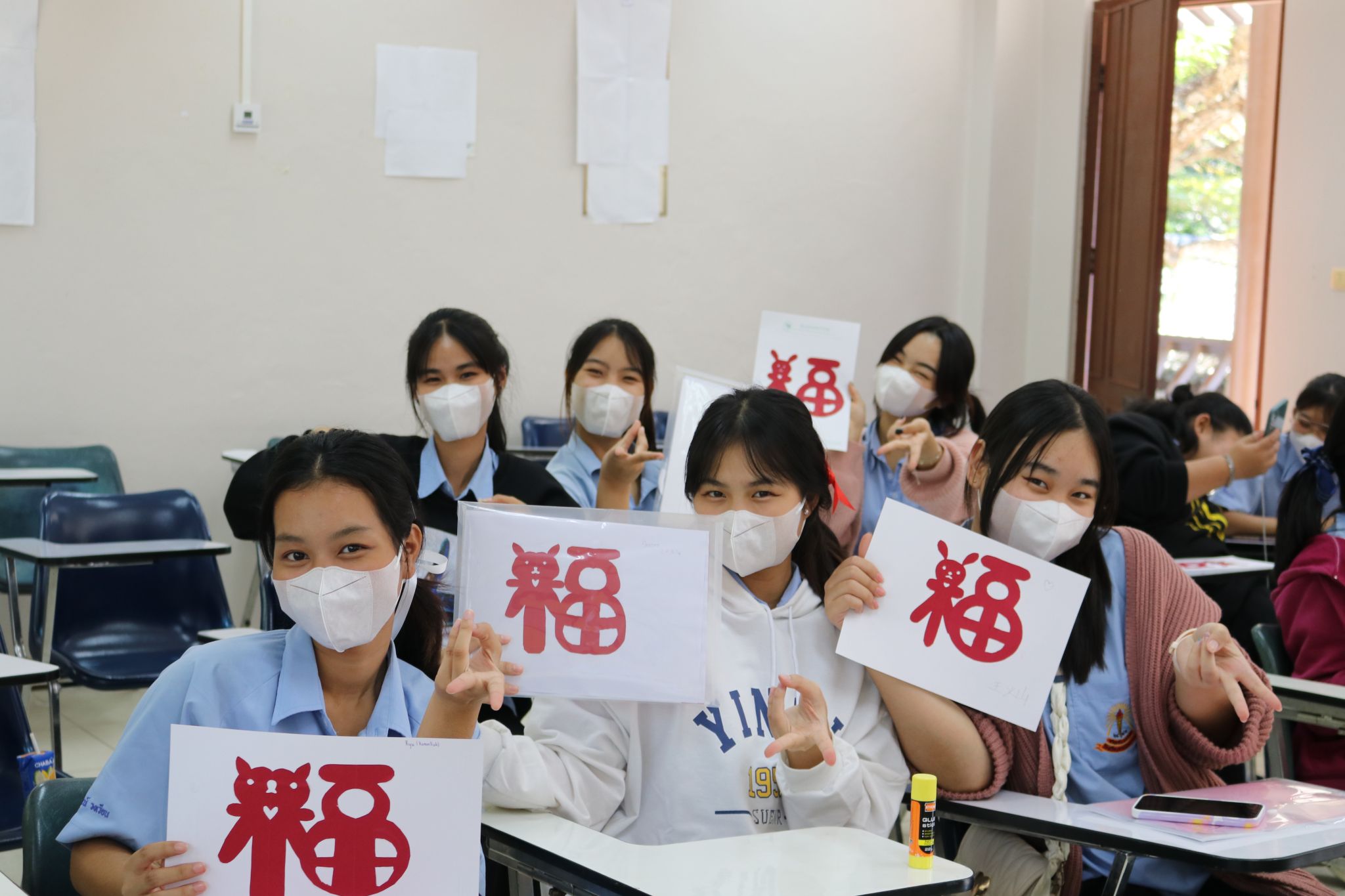 当地时间1月14日,皇太后大学孔子学院成功举办了2023年第一次中文文化营活动。达府中学和清莱远巴保中学初中部和高中部的师生参加了此次中文文化营活动。本次文化营活动开设了中国脸谱、中国功夫、中国剪纸、中国古筝等四门文化体验课程,课程内容丰富精彩,得到了带队教师与学生的一致好评。