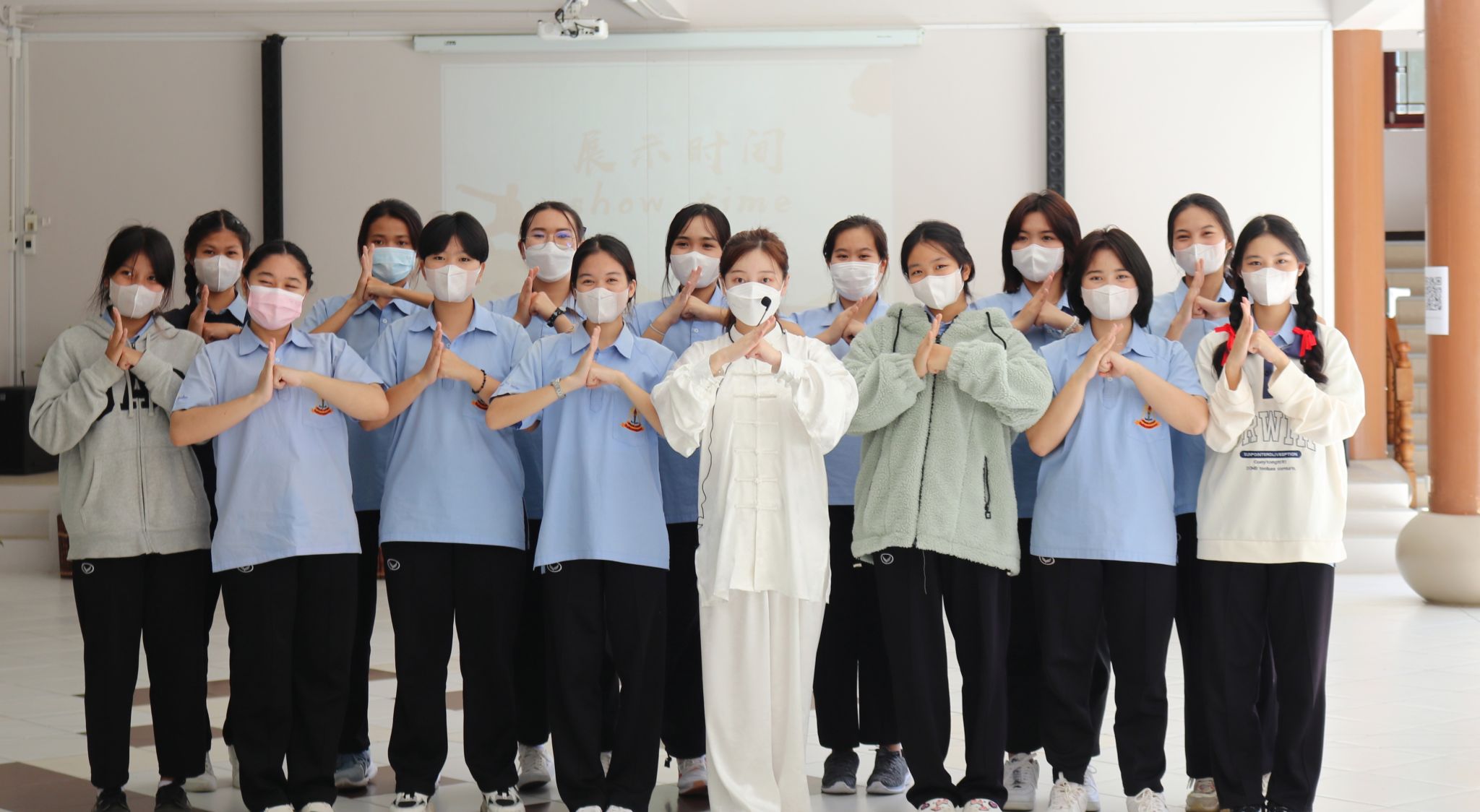 孔院教师范梓硕为学生精心准备一节太极拳课。先为学生介绍儒、道哲学中的太极、阴阳理念,后为学生展示柔中带刚的太极拳,赞叹声此起彼伏。最后学生跟着老师一起练习太极拳,一招一式一板一眼学得有模有样。