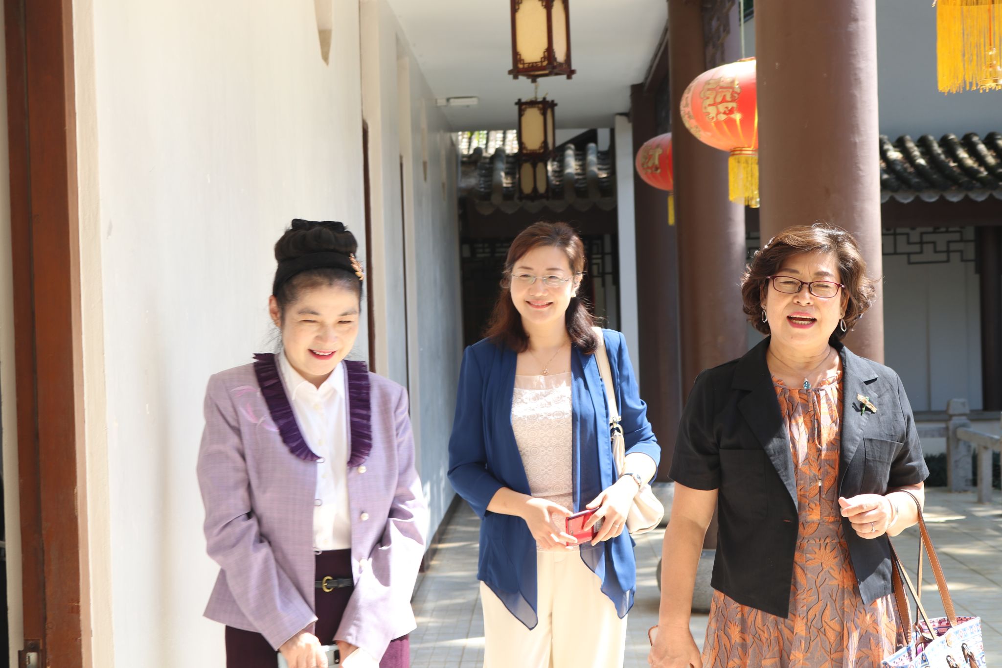 首先,在孔院老师的带领介绍下,两位院长参观游览了皇太后大学孔院,她们对具有苏州园林风格特色的建筑艺术颇为赞赏,经过多功能展厅、教室、图书馆、办公室等区域,张桃陪同对孔院的文化活动举办、学生生源、孔院藏书、教室使用情况进行了介绍。
