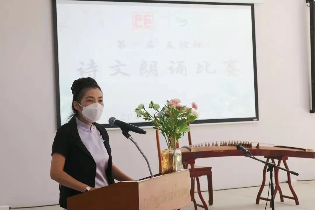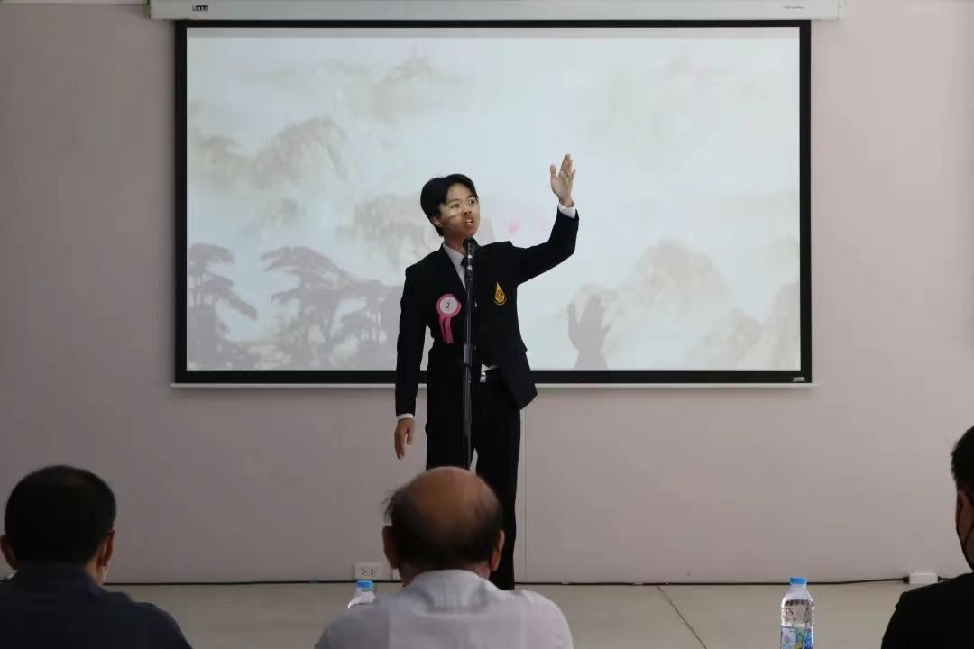 当天各方齐聚一堂,共同感受经典诗文的文化底蕴和人文魅力,现场气氛热烈。比赛伊始,孔院中方院长张桃致辞,“以文常会友,唯德自成邻。”中泰两国莫距万里,相知更近。“至邑无纷剧,来人但欢迎。”借“友谊杯”诗文朗诵的机会,她欢迎大家以后常来孔院做客,愿中泰之间永如孔院内牌匾所题字一般“亲如一家”,友谊长存,最后她祝选手们都赛出风格、赛出水平,祝福本次“友谊杯”诗文朗诵活动圆满成功!