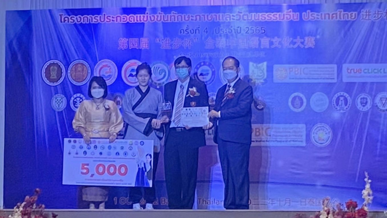 黄佩霜同学,在2022年第四届泰国“进步杯”全泰中国语言文化大赛中获得冠军。