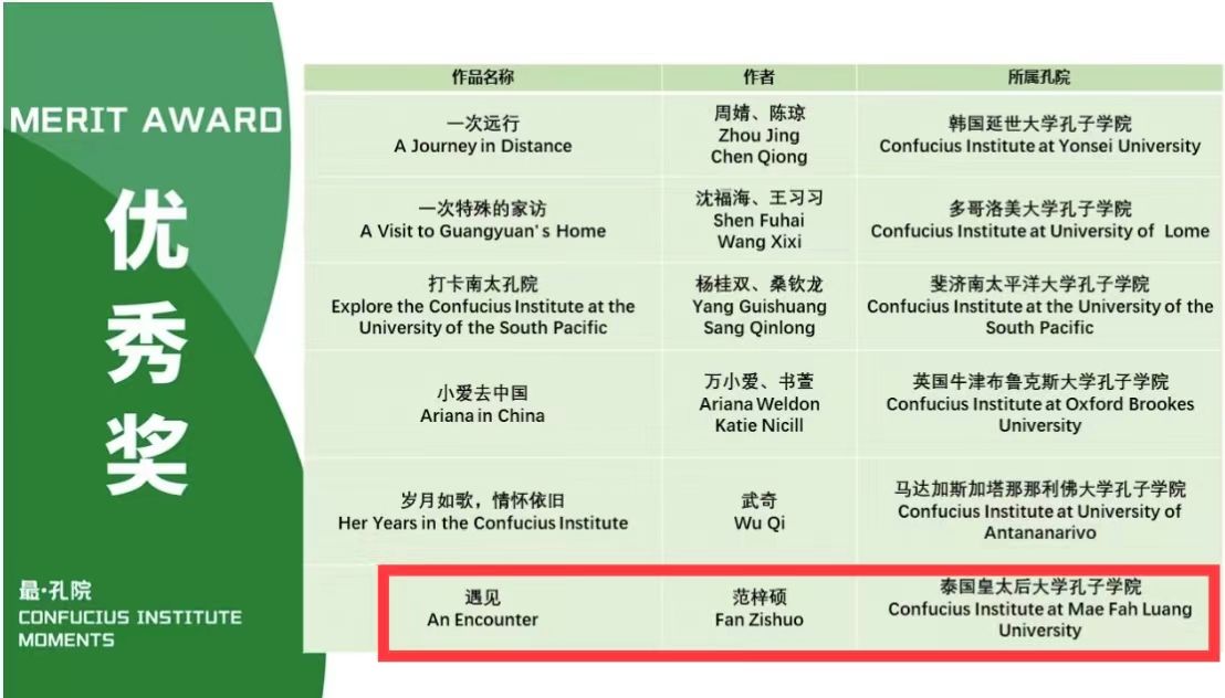 此次活动,皇太后孔院共选送6部作品参赛,其中2部作品成功入围并最终获奖,皇太后大学孔院荣获优秀组织奖。