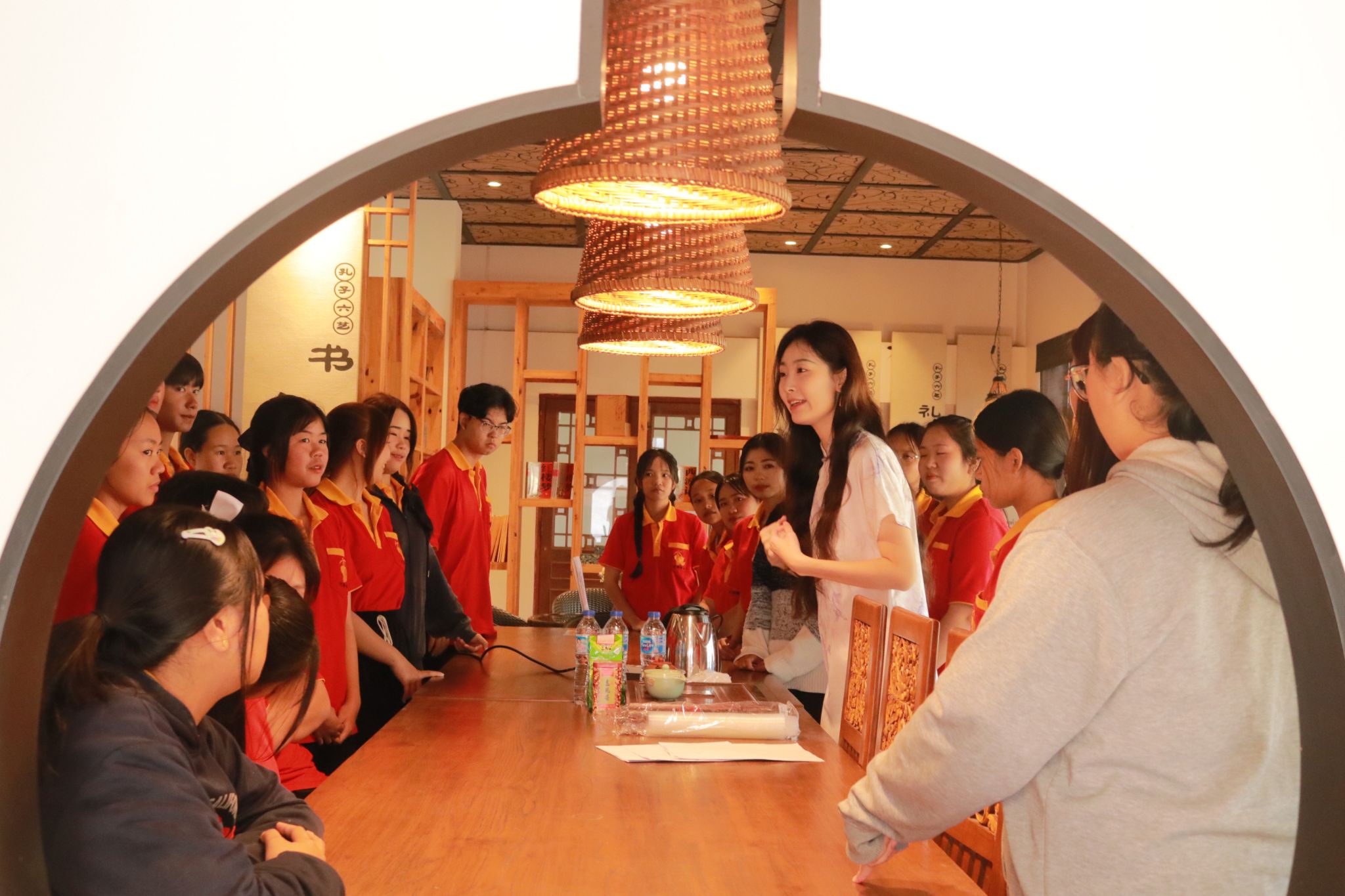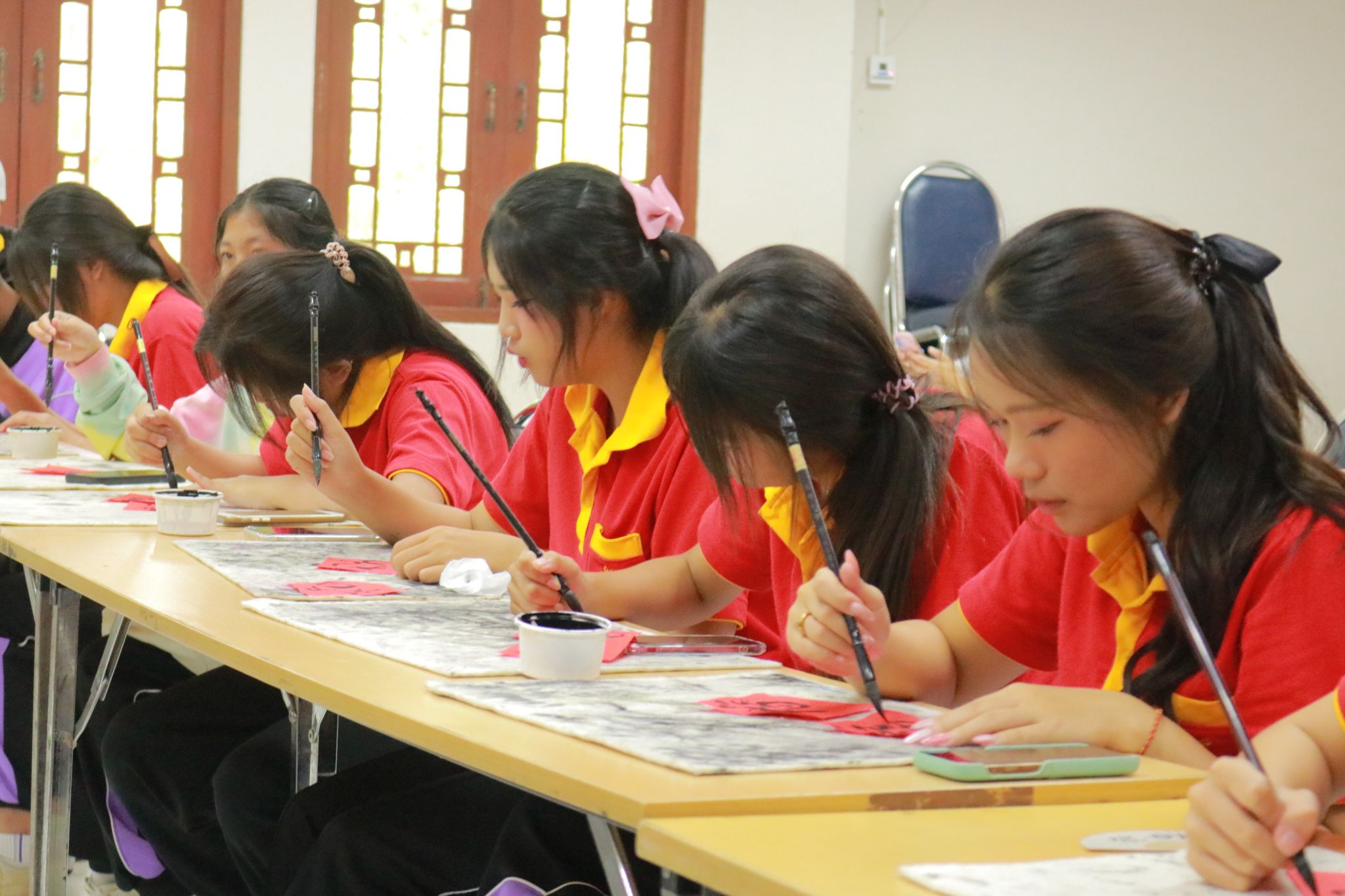 为了让营员们更深入地了解中华文化,并为未来赴华留学奠定基础,文化营的老师们精心设计了丰富的课程。徐艳艳授课的HSK3-4级辅导课程不仅详细讲解了考试的注意事项和题型攻略,还从听力、阅读、写作等方面进行了全面且实用的培训,帮助营员们提升汉语水平,为赴华留学做好充分准备。王玉萍教授的中国书法课程则带领营员们领略了书法艺术的魅力。从字体演变到文房四宝,从书写示范到有奖竞答,营员们纷纷拿起毛笔,蘸上墨汁,在宣纸上书写出一个个充满韵味的汉字。特别是融入蛇年春节元素的“福”字,妙趣横生,营员们在轻松愉快的氛围中学习书法知识,体验挥毫洒墨的乐趣。孔院教师赵梓欣带领营员们体验了中国茶艺,向大家介绍了中国茶文化,详细讲解了茶叶分类、茶具使用方法和品茶礼仪。营员们还通过主客角色扮演,亲身体验了泡茶和品茶的礼仪,深刻感受了中国茶文化的独特魅力,并领悟了“茶禅一味”的人生哲学。