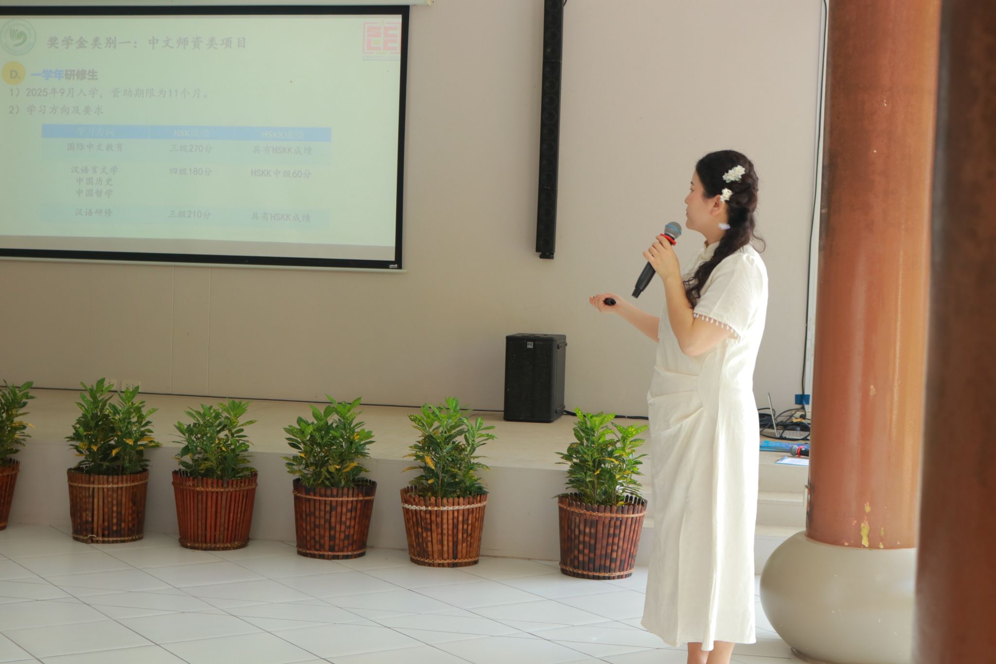 随后,公派教师徐艳艳则细致入微地讲解了奖学金项目的申请流程,帮助营员们明确申请标准,给予申请指导。公派教师王玉萍讲解了各类学生获得推荐信的条件,为大家提供实用建议。