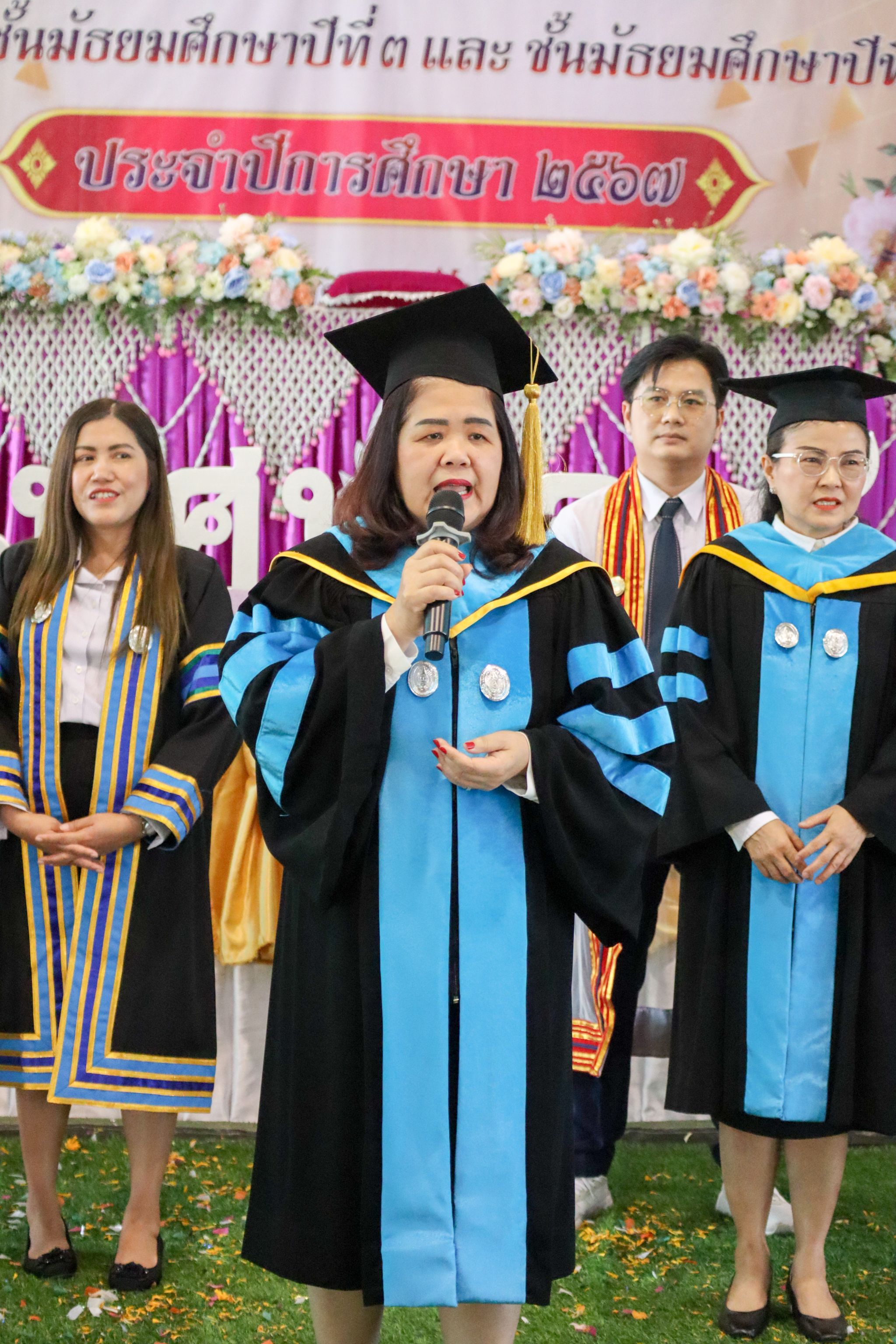 清莱第五中学校长代表学校向全体毕业生表示热烈祝贺,赞扬他们在高中阶段取得的优异成绩与不懈努力,鼓励学生们在未来的人生旅途中,不断追求卓越,勇于面对挑战。此外,她向皇太后大学孔子学院多年来在中文教学和文化交流方面的支持表达了诚挚感谢,期望双方的合作能够继续深化,为学生们提供更多的学习机会。