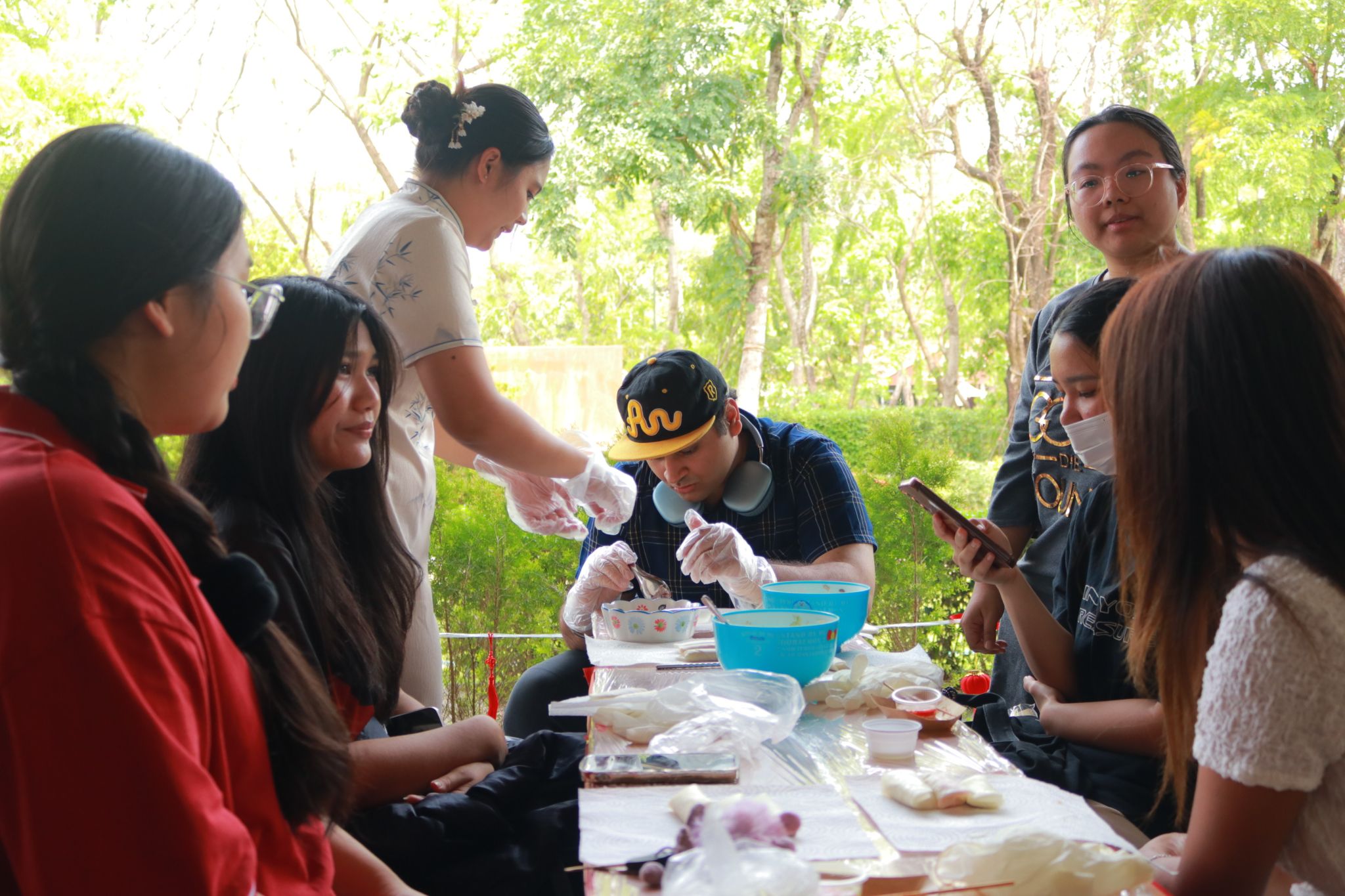 在互动体验区,参与者们兴致勃勃地学习制作椰糖椰丝汤圆、鸡丝凉面和体验中国茶艺。中医系学生王鹿菲一边包着汤圆一边感叹:“虽然第一次做不太熟练,但这样动手体验让我真切感受到了中国饮食文化的魅力。”无论是包汤圆、拌凉面,还是泡茶、品茗,大家在动手实践中体验美食、交流文化,都深刻感受到了中泰饮食文化的异同与融合,也进一步加深了对中华传统文化的理解与兴趣。