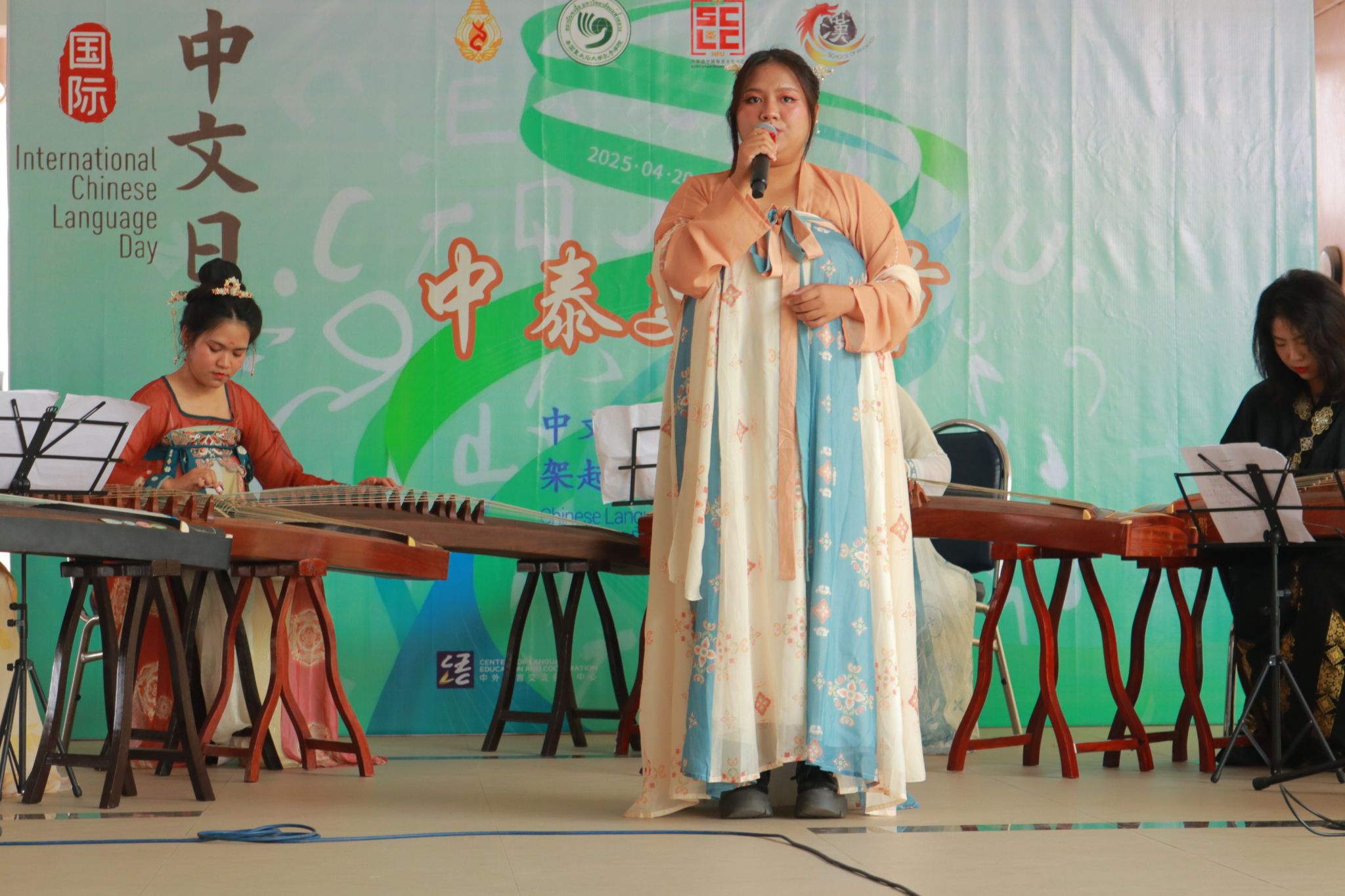随后,精彩的文艺表演拉开序幕。汉学院中国民乐乐团合作演奏了《月亮代表我的心》,琴声悠扬,深情动人。汉学院教师晋琳演绎经典曲目《女儿情》,学生王芳带来歌曲《痴情冢》。民乐与流行音乐交织,共同营造了一场跨越时空的听觉盛宴。