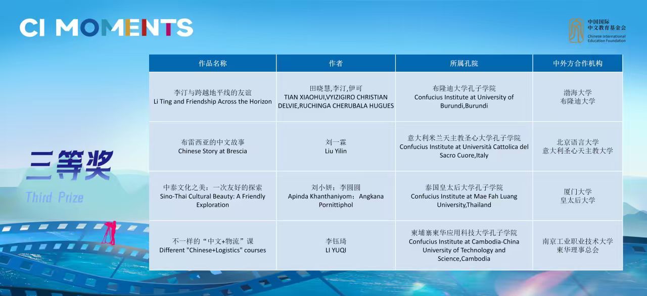 本次“最·孔院”短视频大赛由中国国际中文教育基金会主办,共征集到来自84个国家143所孔子学院报送的616部作品。经专家评审委员会多轮精评,共评选出特等奖3部,一等奖15部,二等奖30部,三等奖100部。37所孔子学院获最佳组织奖,15位创作者获“孔院达人”称号。