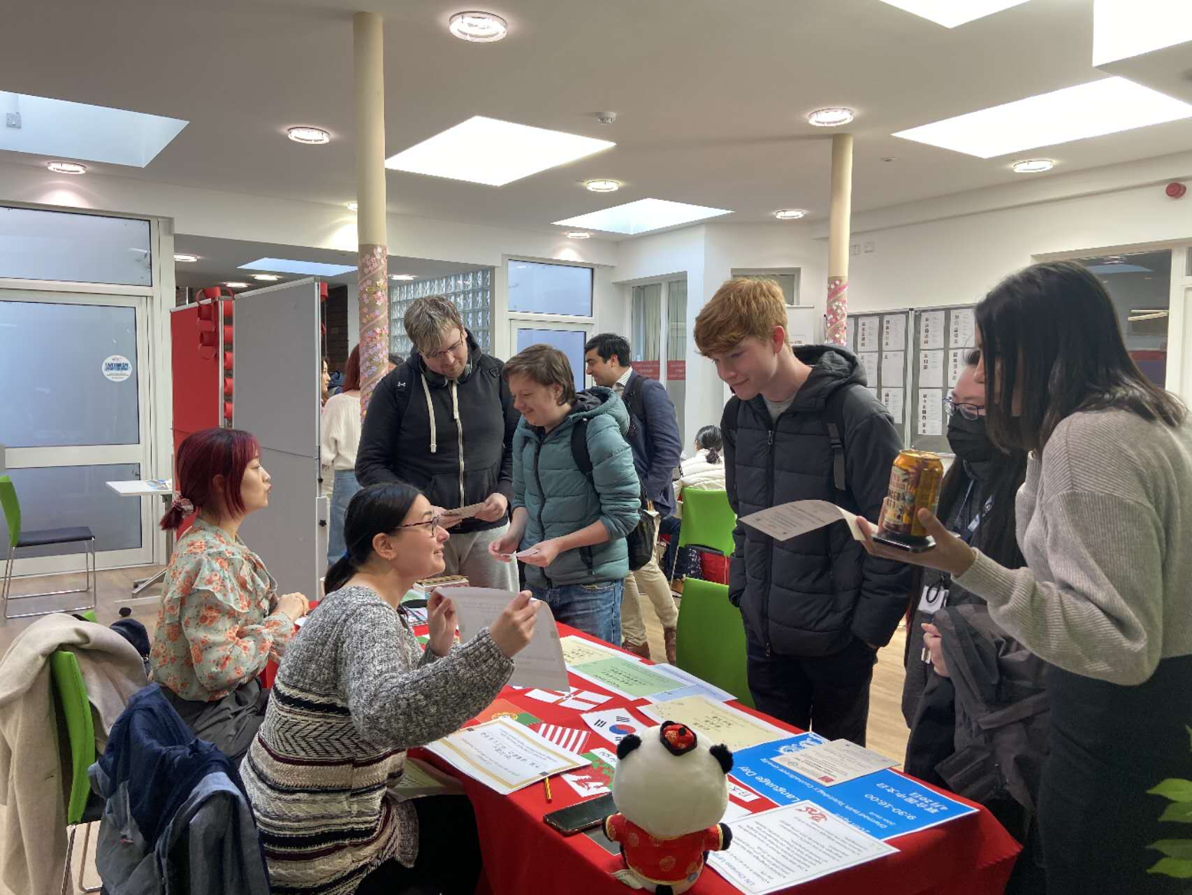 当地时间4月20日,在卡迪夫大学语言教学楼一楼,卡迪夫大学孔子学院成功举办了“国际中文日”活动,活动内容主要包括绕口令、谜语,声调挑战,茶艺体验,了解十二生肖以及学习国旗挑战等,吸引了近50人参与体验中国文化。