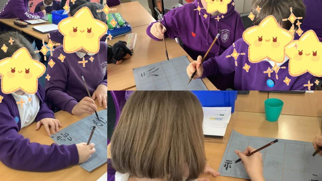 朱墨迪和杨梦姣准备了学写毛笔字、做紫荆花、了解十二生肖、了解新年习俗、说吉祥话等环节,同学们都非常感兴趣,积极参加各个活动,全情投入。