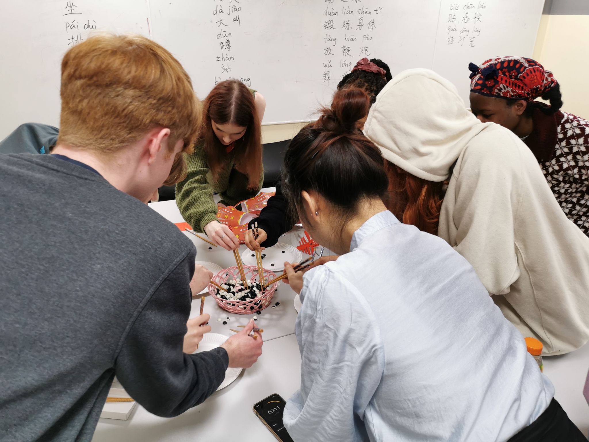 当地时间2月8日,卡迪夫大学中文系与孔子学院共同举办了迎新春系列活动之中国新年工作坊,开展了剪纸、书法、中国结、筷子比赛、抢红包、白兔蹲以及齐唱新年歌等体验活动。卡迪夫大学中文系及孔院师生共计20余人参加了本次工作坊。