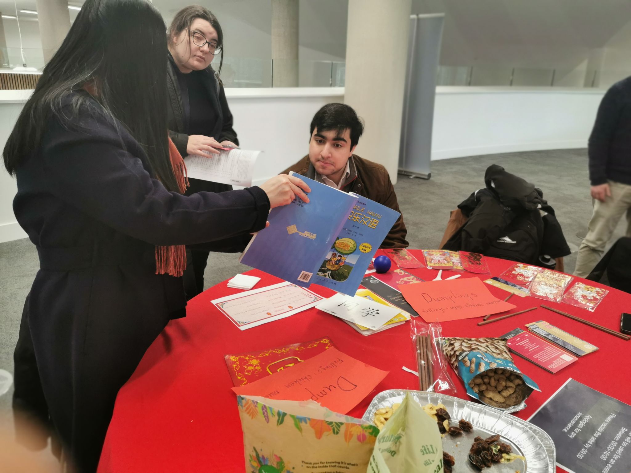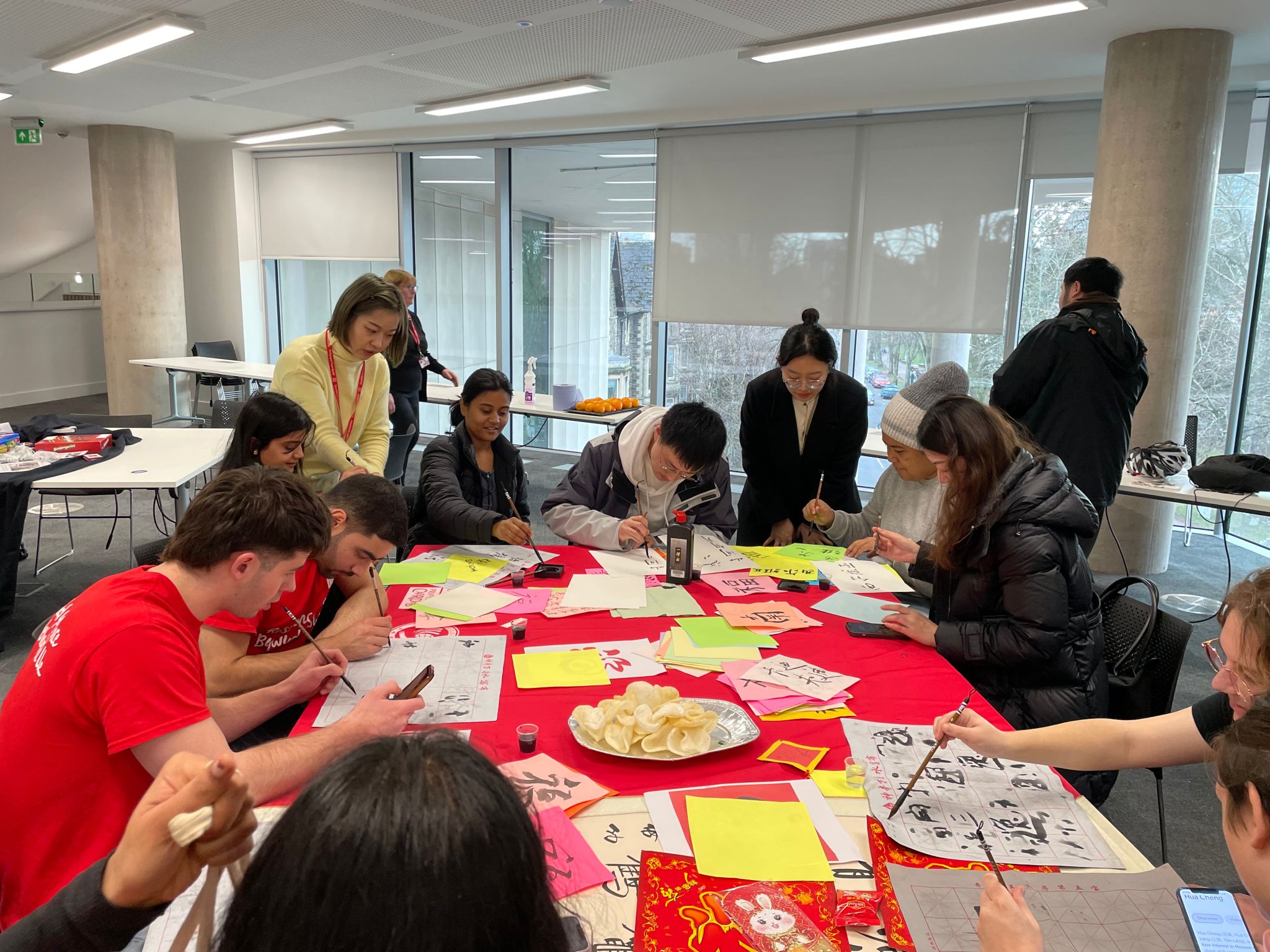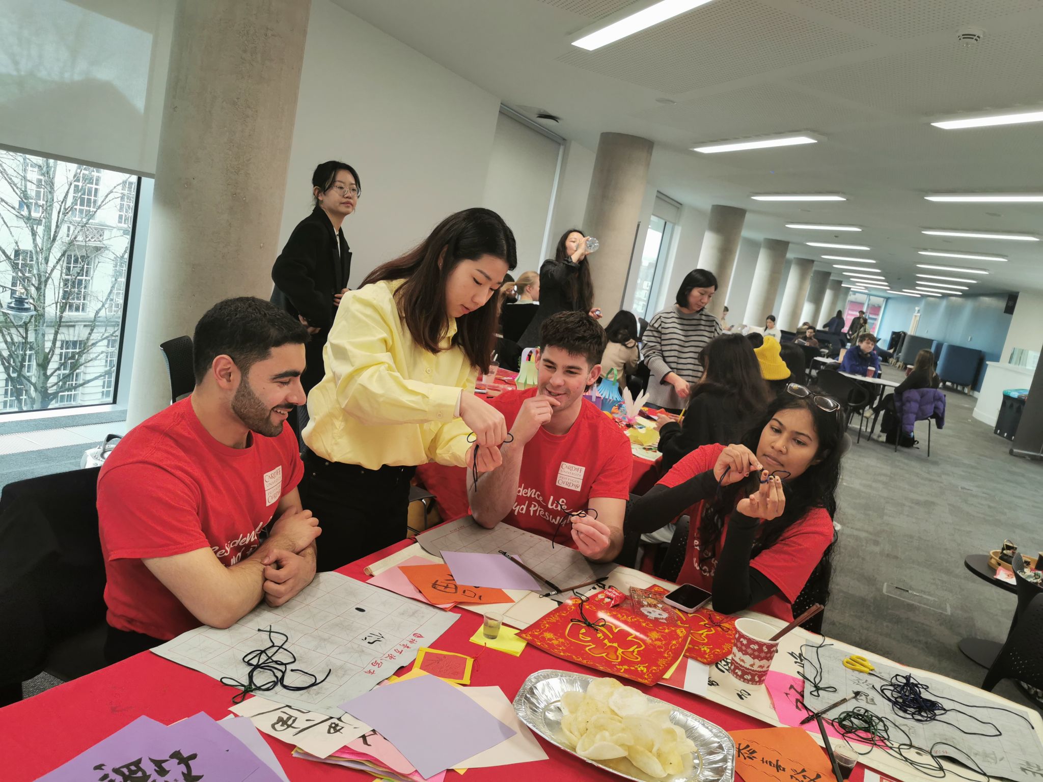 当地时间2023年2月1日,卡迪夫大学孔子学院与卡迪夫大学现代外语学院合作,在学生活动中心2楼开展了“迎新春、庆新年”师生互动体验活动。体验的项目有:书法、中国结、灯笼制作、剪纸、毽子、顺口溜、美食品尝等。来参与活动的受众大部分为卡大学生,还有本土教师、留学生等。