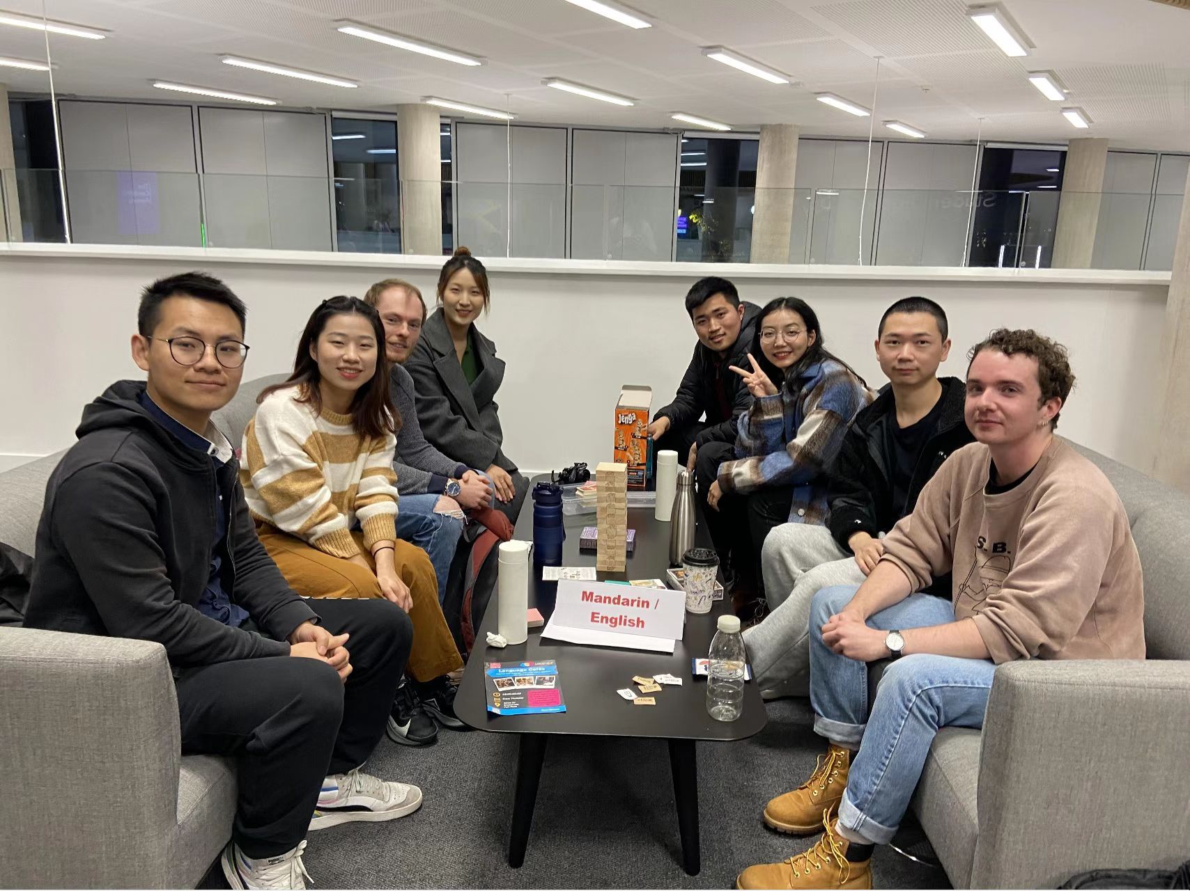因语言而相识,为文化而相聚。当地时间11月17日晚,卡迪夫大学孔子学院汉语教师志愿者邓施懿、付永平、雷雪婷与公派教师郝堃参与卡迪夫大学现代语言学院举办的语言咖啡角活动。该活动在卡迪夫大学学联大楼开展,共设置10余个语言交流区,包括威尔士语区、法语区、德语区、日语区、意大利语区、西班牙语区等。汉语交流区作为其中之一,向卡大全体师生开放。