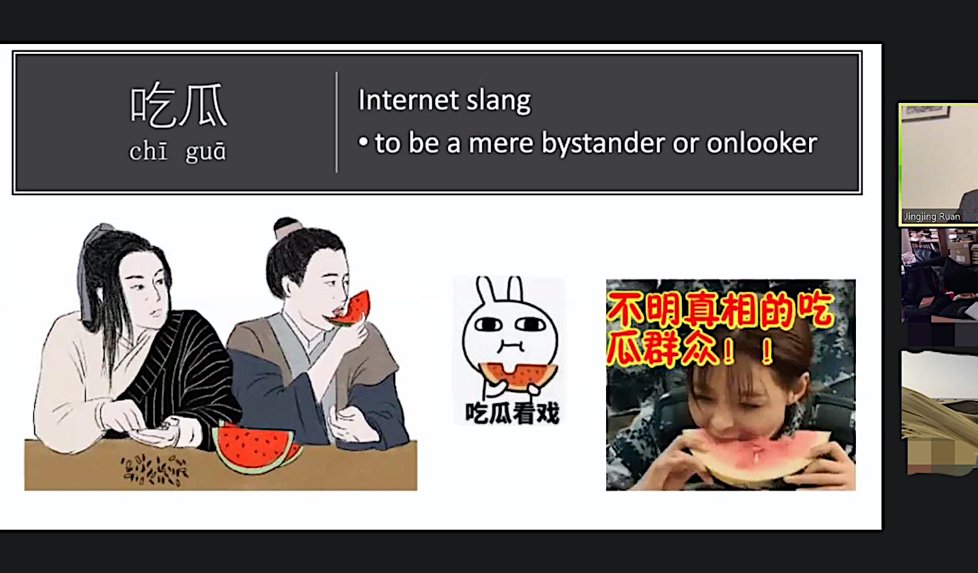 在第三部分,阮老师介绍了与社交媒体相关中文词汇和句型,为听众展示了如何在社交媒体上与中国朋友和同事沟通,对网络热词进行了批判性讨论,分析了媒体审批和信息茧房的案例,引导学员们辩证思考中外社交媒体的利弊。