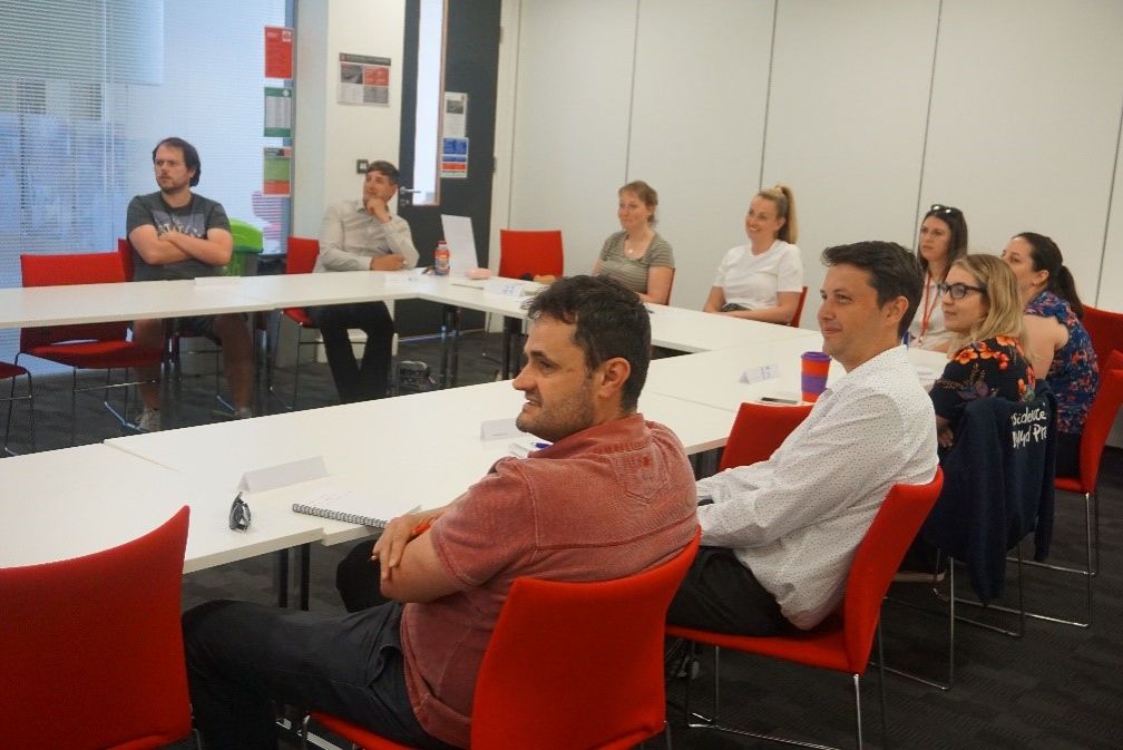 卡大孔院公派教师们首先向卡迪夫大学的教职工们介绍了中国地理概况、不同地域方言以及少数民族语言的分布情况,生动形象地阐述了“中文”“汉语”及“普通话”的不同含义。在初步理解汉字和拼音之间的关系后,卡迪夫大学的教职工们跟着两位中文老师学习了日常生活常用语、数字、电话号码、电子邮箱和年月日的中文表达。经过细致的讲解和反复的练习,参与活动的卡大教职工很快就掌握了简单的中文对话。