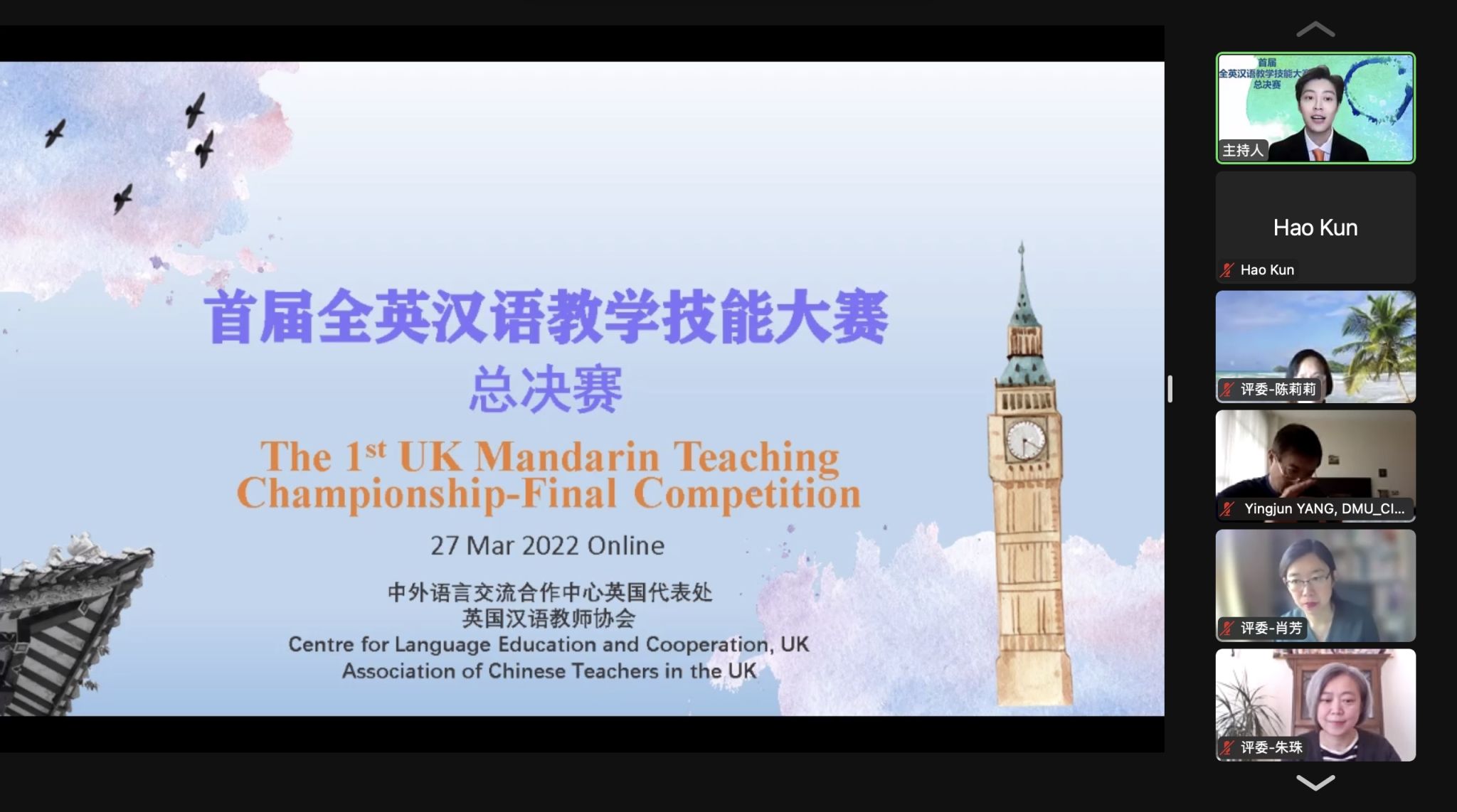 当地时间3月27号,来自全英各地的汉语精英教师汇聚一堂,参加2022年全英汉语教学技能大赛总决赛。本次比赛由中外语言合作交流中心英国代表处和英国汉语教师协会举办,来自威尔士、苏格兰、英格兰中部和北部、伦敦和英格兰南部以及北爱尔兰五大分区赛一等奖、二等奖以及优秀单项奖的19名获奖选手将在线呈现精彩的汉语微课堂并角逐最后的奖项。