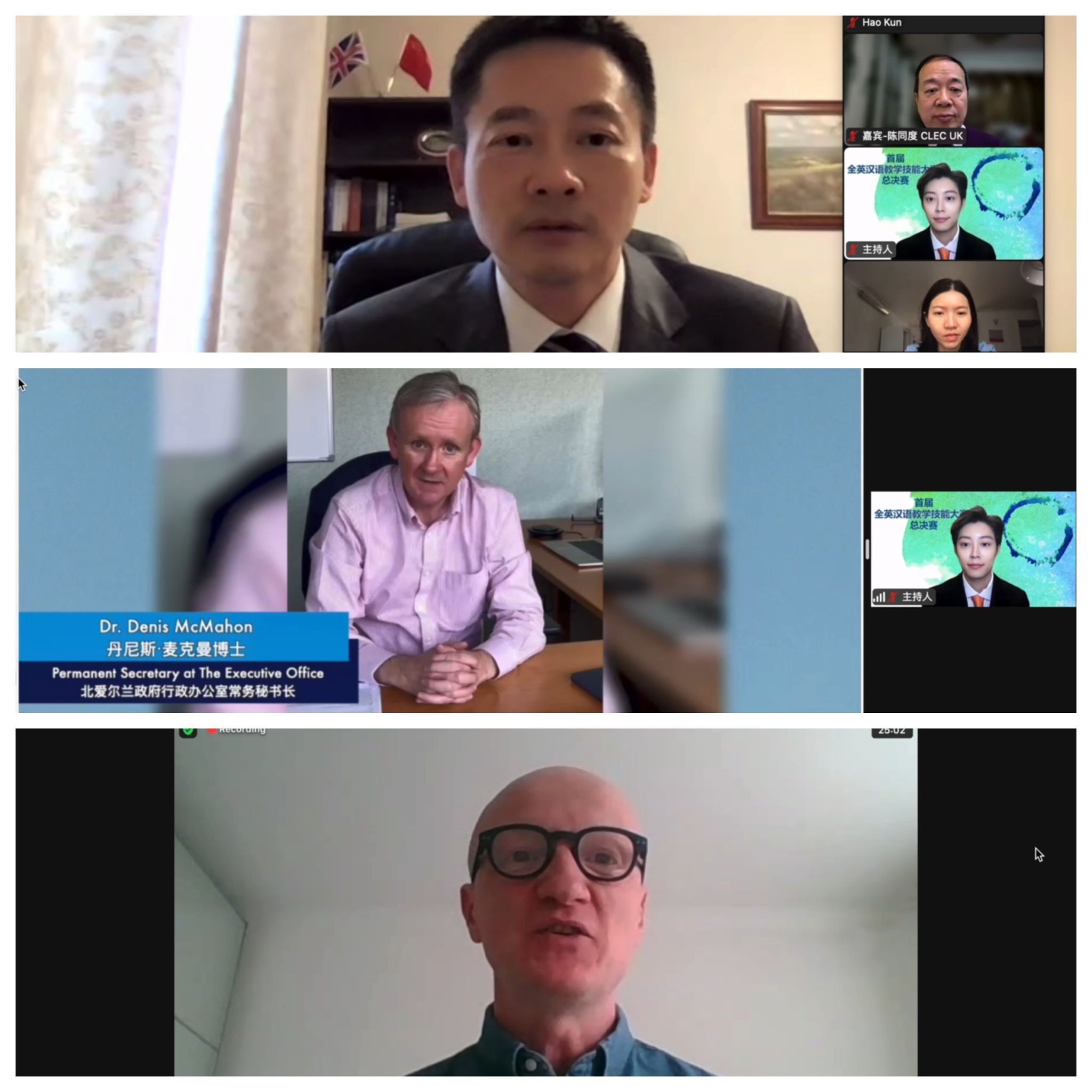 出席本次活动的嘉宾有中国驻曼彻斯特总领馆教育处陈伟参赞;英国文化教育委员会、中小学及技能部首席顾问韦斯特·香农(Shannon West);中国驻英国大使馆教育处二等秘书罗安娜;中国驻曼彻斯特总领馆教育处任宇领事;中外语言交流合作中心英国代表处、英国汉语考试委员会陈同度主任。陈伟参赞、韦斯特·香农(Shannon West)先生和北爱尔兰政府行政办公室常务秘书长丹尼斯·麦克曼(Denis McMahon)先生分别致辞,他们赞扬了中英文化交流的进步,并肯定了国际中文教师在其中做出的贡献,最后祝愿参赛老师获得优异成绩。