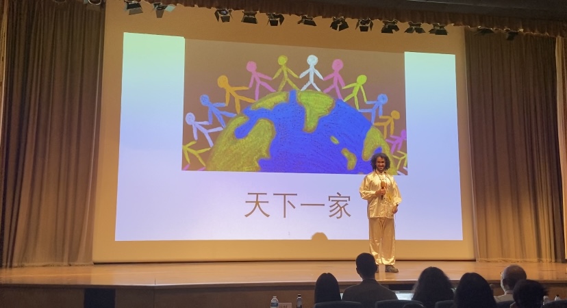 第二位上台的选手是叶雅格,他的指导教师是张苗。他提到,自己的生活与学习都受到了“天下一家”理念的影响,语言让心灵相通,文化拉近彼此的距离。才艺环节他展示了中国功夫《形神拳》,获得了全场喝彩。