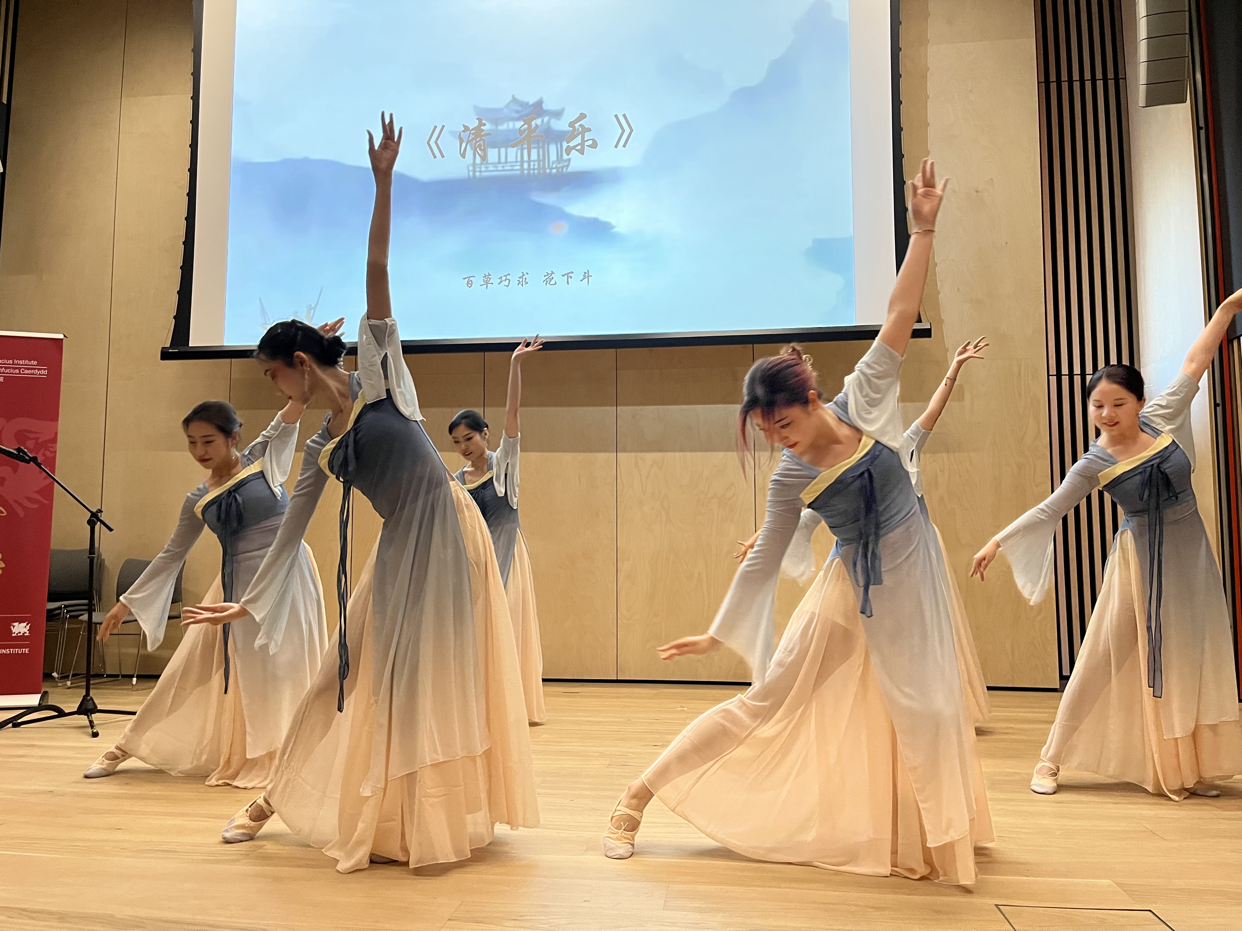 卡迪夫孔院教师、志愿者团队表演舞蹈《清平乐》