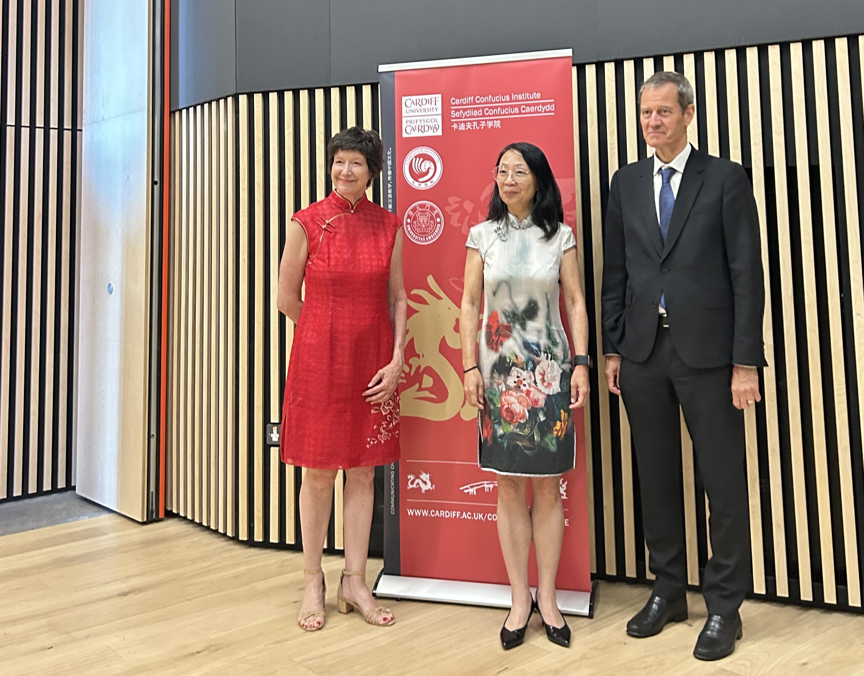 当地时间7月5日晚,卡迪夫大学孔子学院迎来建院十五周年庆典。中国驻英大使馆教育处送来了祝贺,语合中心英国代表张倩老师参加了庆典活动。厦门大学与英国大学共建的南安普顿大学孔院英方院长郑颖与中方院长郑若玲,以及纽卡斯尔孔院中方院长郑若娟也远道而来,共同庆祝卡迪夫大学孔院15岁生日。卡迪夫大学副校长Ruedi Allemann教授、卡迪夫大学语言学院院长David Clarke、卡迪夫大学孔院的两位前英方院长Richard Evans教授、Anthony Beresford教授等约50名贵宾出席了庆典活动与晚宴。卡迪夫大学副校长Ruedi Allemann教授现场发表贺词。