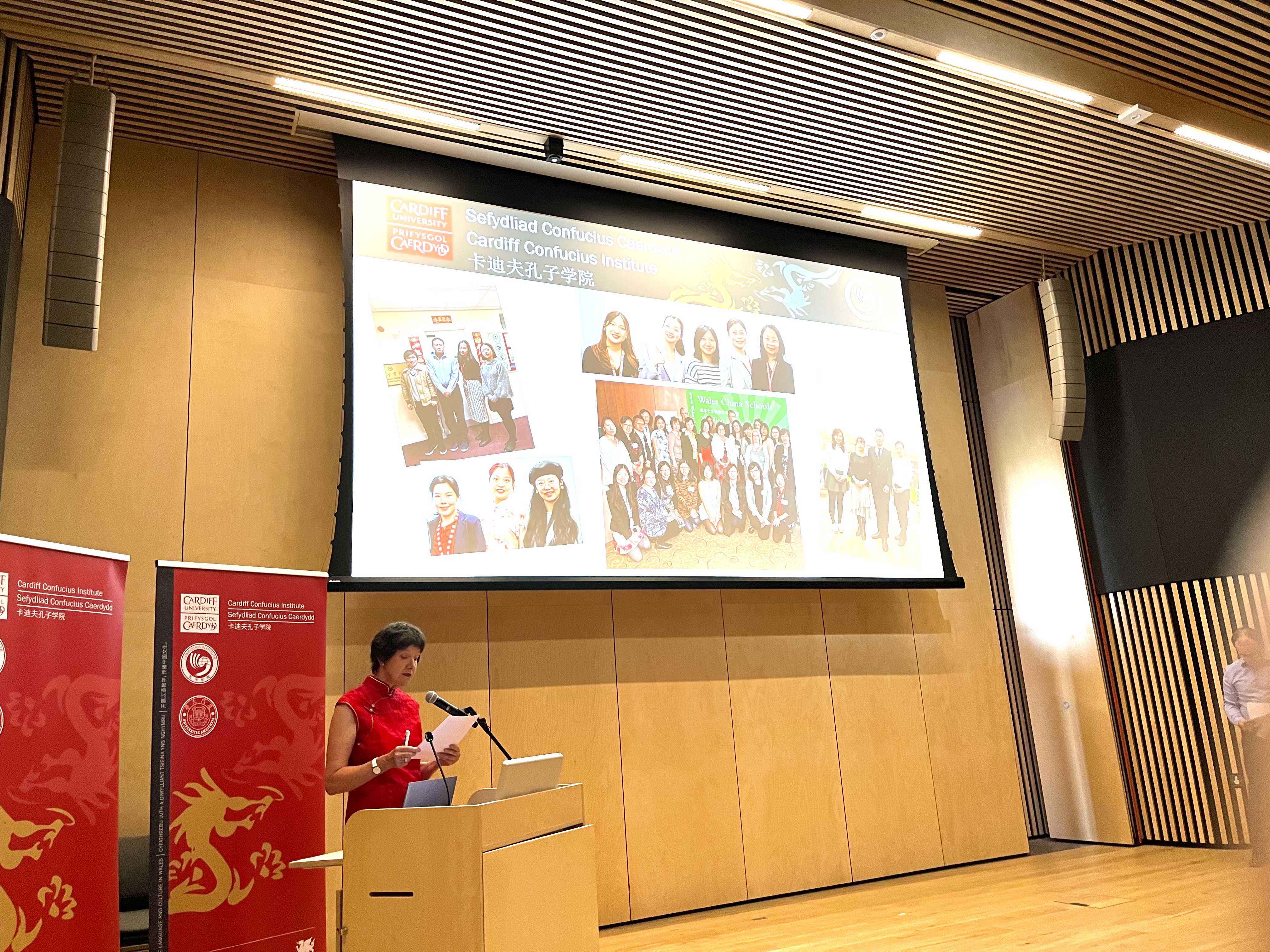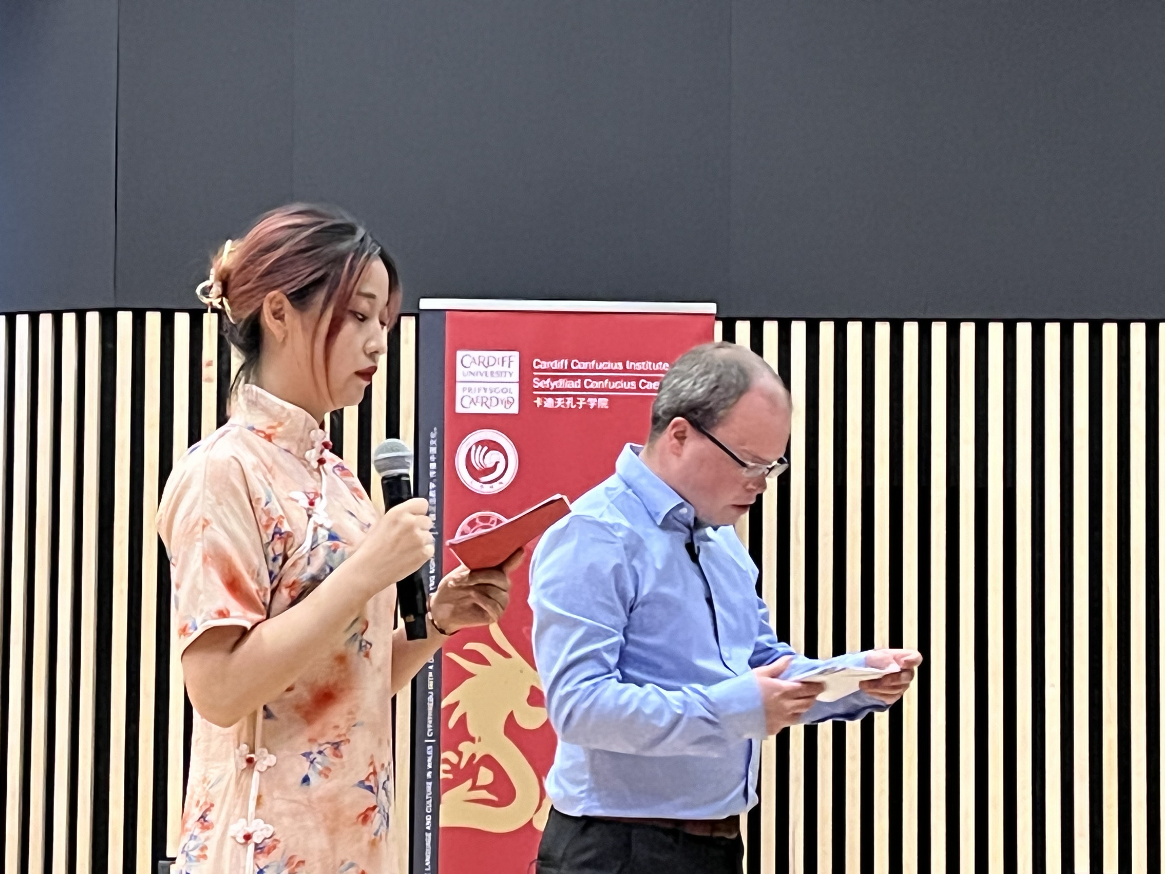 Allemann教授代表卡迪夫大学向孔院成立十五周年致以热烈祝贺,对孔子学院在中文教育推广和中英文化交流方面取得的成就表示充分肯定。Allemann教授表示,孔院为中国和欧洲搭起了沟通的桥梁,助力了卡迪夫大学语言学院的中文教学,为卡迪夫大学的学生们、威尔士各个中小学的孩子们打开了看向东方的视野。Allemann教授寄语未来,希望孔院能在威尔士建立更广的教学网络,培养更多汉语言优秀人才,为中英、中威文化交流做出更大贡献。