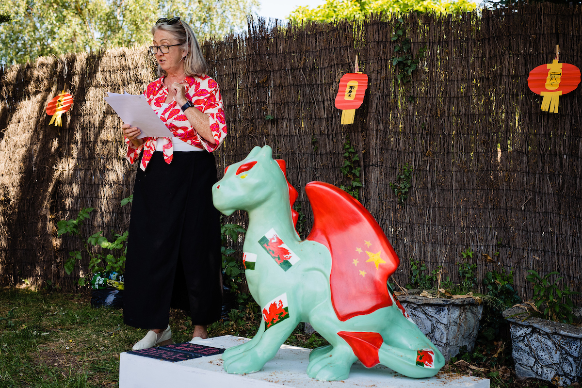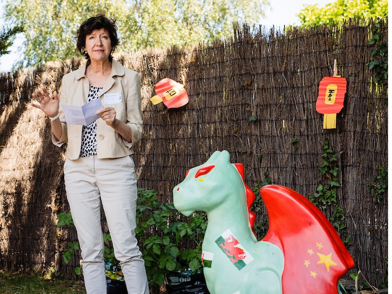 活动当天,学校草地上飘扬着五星红旗和威尔士国旗,孔子教室用中国书画、喜庆的灯笼和孔子语录的标语等装点一新,充满浓厚的中国味。