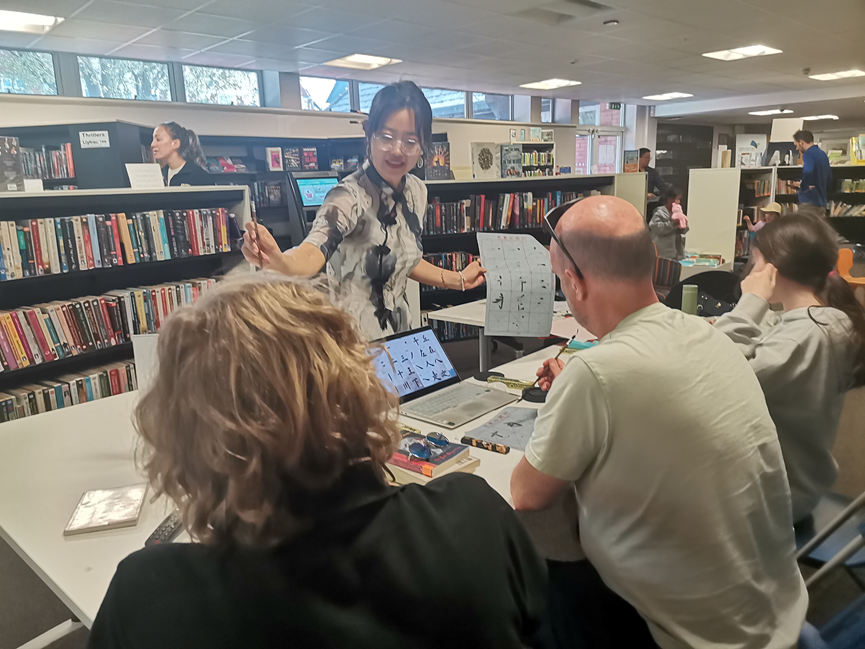 中国书法俱乐部是卡迪夫市图书馆与卡迪夫大学孔子学院合作多年的品牌特色文化项目,旨在让卡迪夫民众通过这一活动加深对中国和中国书法艺术的理解,进而爱上中国。书法俱乐部作为多年以来深受当地民众喜爱的品牌活动,在迎接卡迪夫大学孔子学院15周年纪念日之际,于当地时间5月13日隆重举办。本次活动由卡迪夫大学孔子学院朱墨迪老师组织策划,雷雪婷老师辅助主持。活动当天吸引了许多市民前来学习。