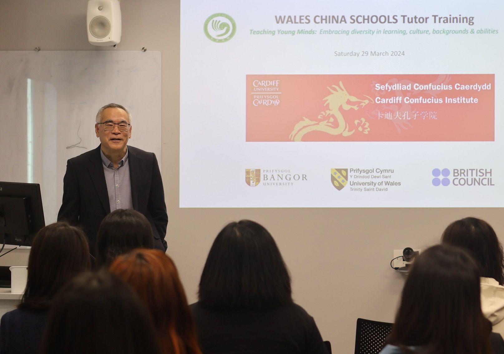 培训在卡迪夫大学学生活动中心举行,由卡大孔院英方项目经理维多利亚·乌塞莱 (Victoria Ucele)主持。卡迪夫大学中国事务主任、孔子学院外方院长姜文国教授出席并致辞。姜文国表示,虽然自己从事医学领域工作,但一直关注并钦佩孔院教师在跨文化教学中的专业精神。他强调,本次培训将有力推动威尔士地区中文教学的创新发展,帮助更多学生在多元文化环境中获得语言能力与文化共识。