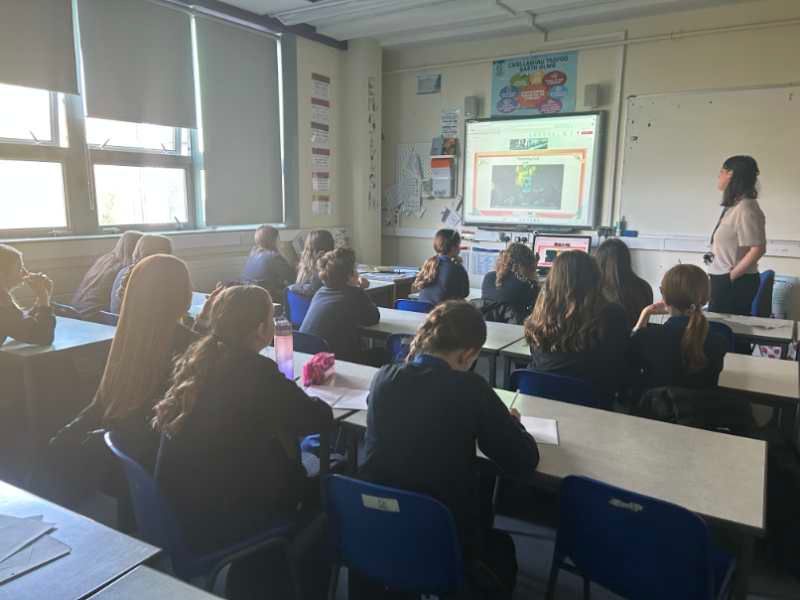 接着,两校学生用精心制作、图文并茂的幻灯片,生动展示了中国春节与威尔士圣大卫日的传统习俗。翔安实验学校学生还在介绍中巧妙融入了福建当地的春节特色文化——“游神”与“簪花”。盖斯·欧鲁格学校学生特别介绍了独具威尔士特色的文化符号“黄水仙”和“韭葱”及其意义。在趣味互动问答环节,学生们积极参与,现场充满了欢声笑语,气氛热烈。