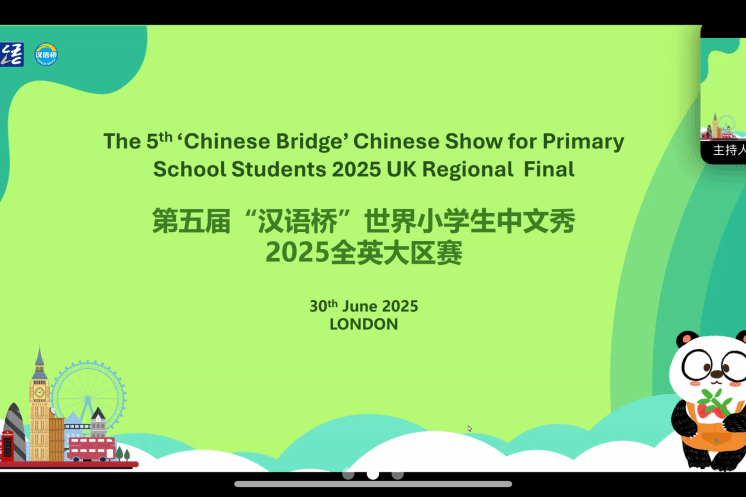 当地时间6月30日上午,第五届"汉语桥"世界小学生中文秀全英大区赛决赛在线上隆重举行。经过激烈角逐,卡迪夫大学孔子学院教学点盖斯·奥鲁格学校(Ysgol Garth Olwg)凭借创意十足的表演《蜗牛与黄鹂鸟》荣获少儿组团体秀第二名。