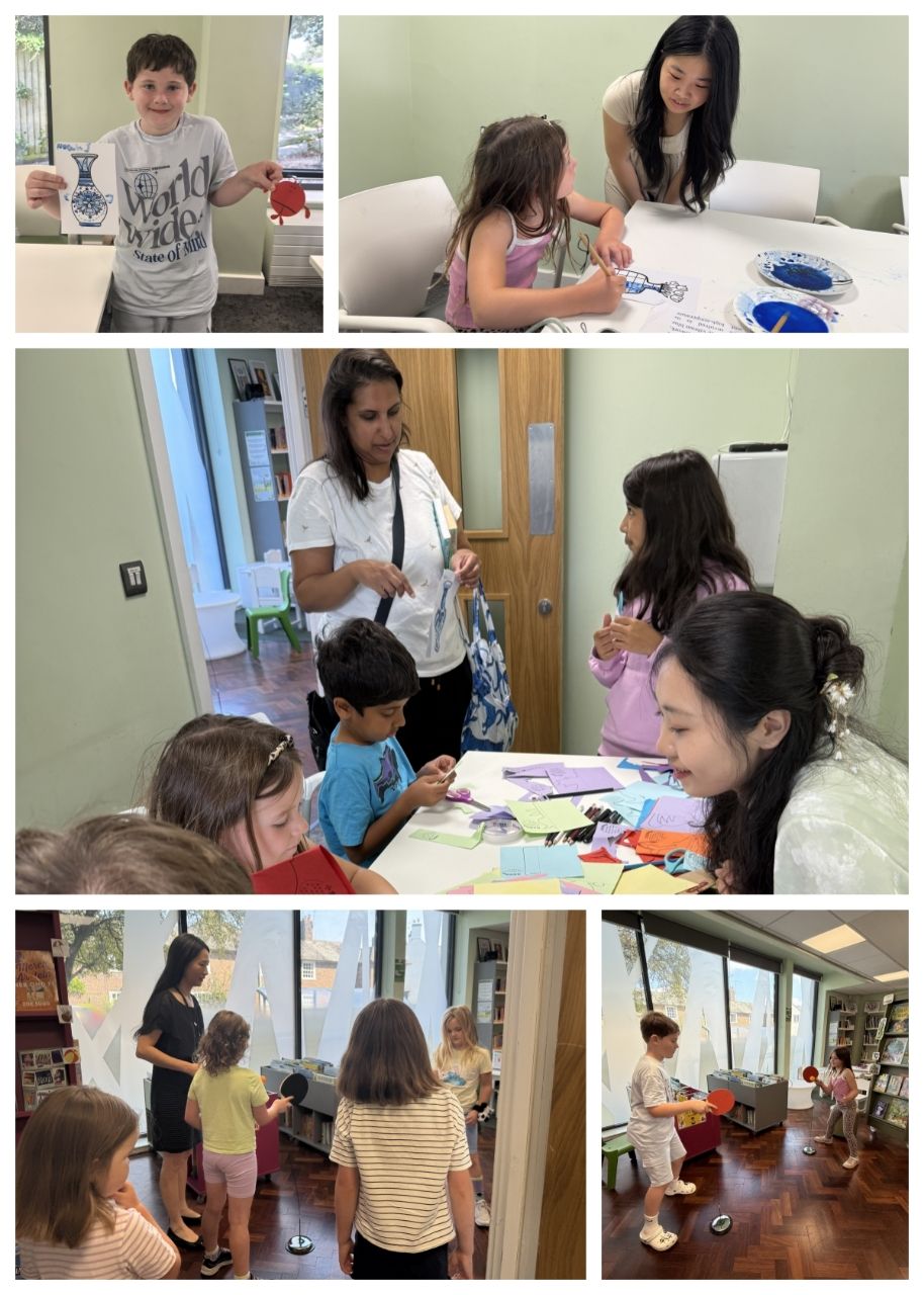 8月22日,孔院在 Rhiwbina Library 举办剪纸、青花瓷涂色和乒乓球训练等活动,近20名学生和家长参与。一位奶奶带着孙子和孙女参加,孙子对乒乓球训练表现出极大兴趣,专注练习了十几分钟后,妹妹也加入其中,两人又一起训练了十几分钟。奶奶高兴地说:“The world is open up today”,表示这次活动让他们大开眼界,并表示要上网为孙辈购买乒乓球训练器,让孩子们能够在家继续练习。