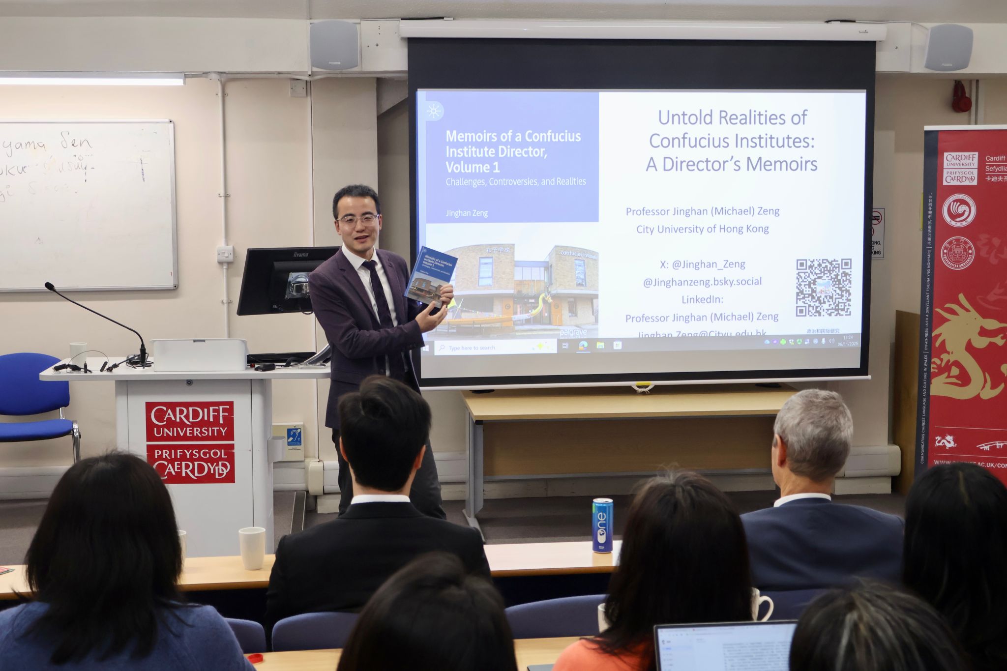 当地时间11月6日下午,香港城市大学公共及国际事务系教授、原英国兰卡斯特大学孔子学院院长曾敬涵教授,应邀在卡迪夫大学现代语言学院举行新书分享会,介绍其最新著作《孔子学院院长回忆录·第一卷:挑战、争议与现实》。该活动由卡迪夫大学国际事务院长、孔子学院外方院长周鹏教授主持,卡迪夫大学负责国际事务的副校长鲁道夫·阿勒曼教授(Professor Rudolf Allemann)致开幕词,现代语言学院院长大卫·克拉克教授(Professor David Clarke)参与圆桌讨论,多名学者及孔院师生参与交流。