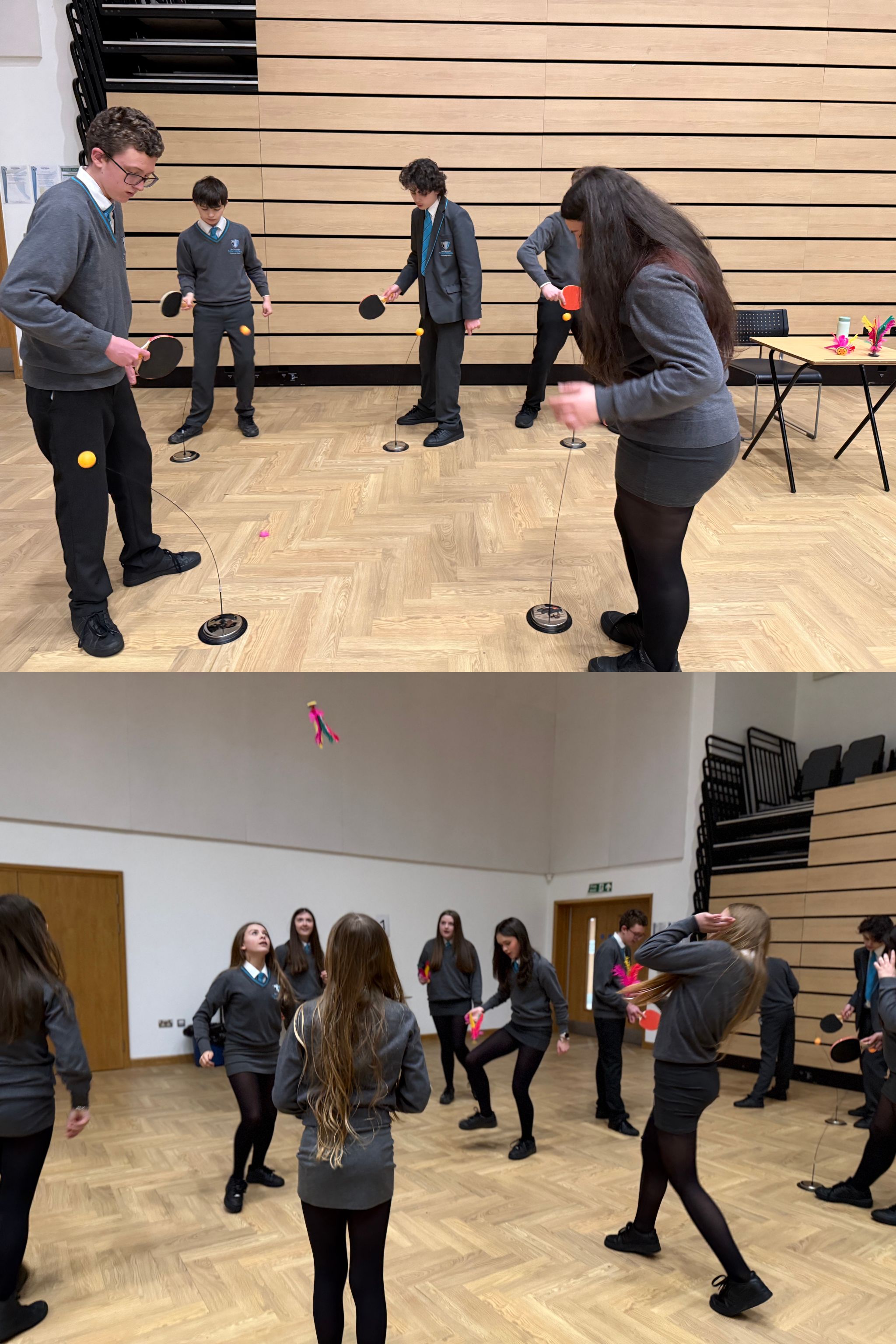 图2: 学生体验乒乓球、踢毽子