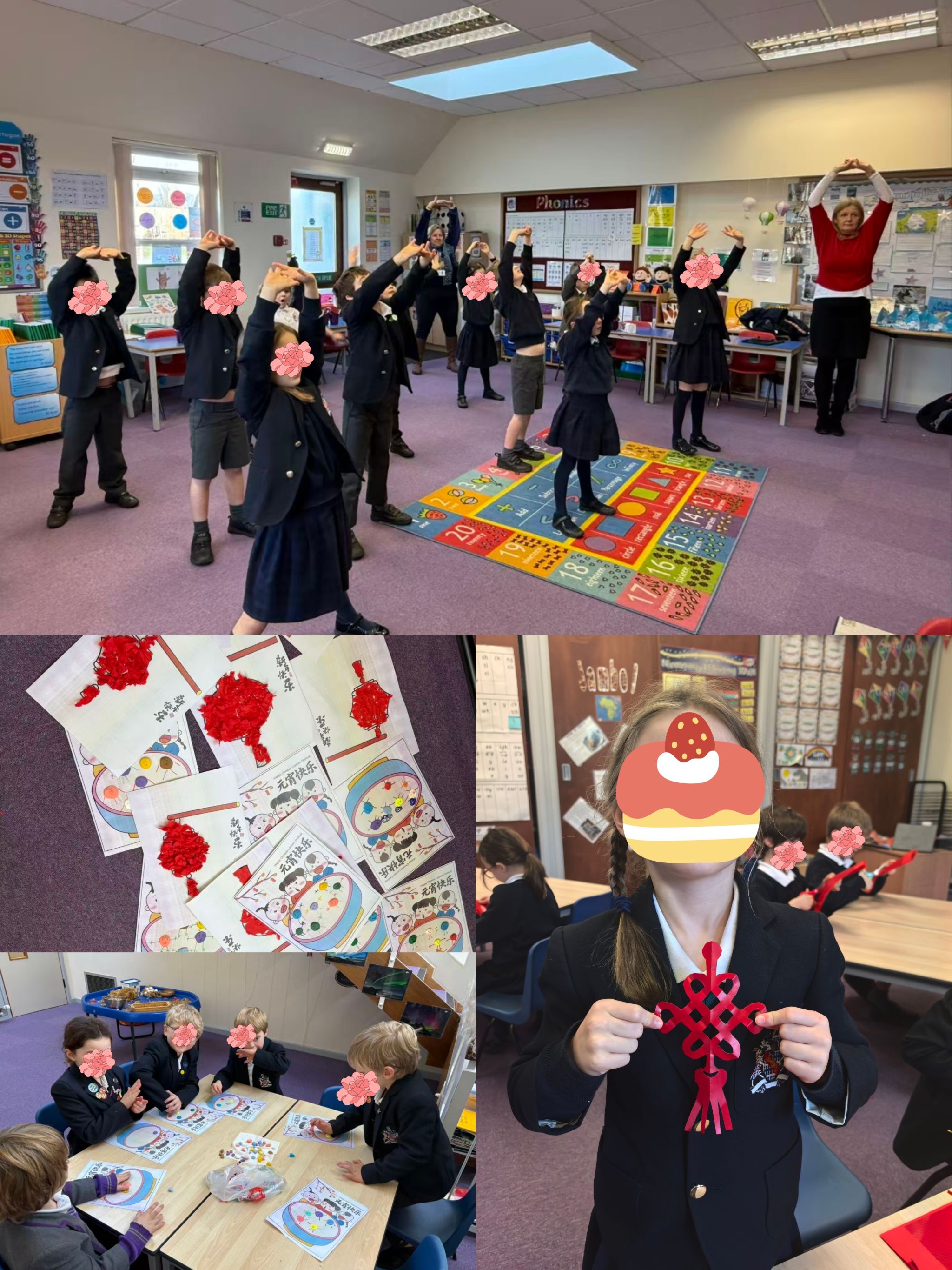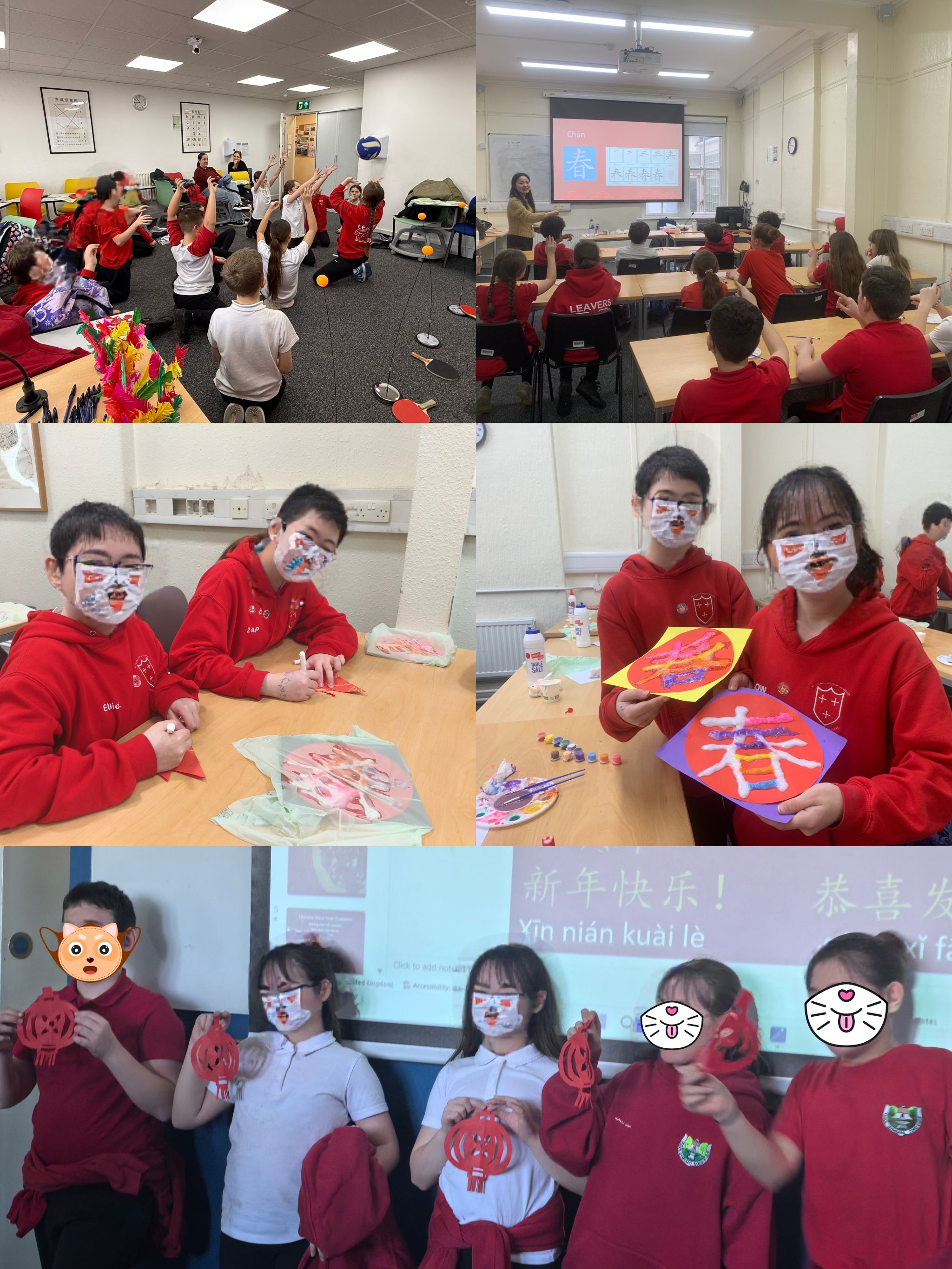 在 Haberdashers’ Monmouth School,孔子学院教师围绕春节主题开展剪纸、书法写“福”、灯笼绘画及传统体育互动活动。学生们通过书写“福”字和绘制灯笼,理解春节象征吉祥与幸福的文化内涵;窗花剪纸和体育体验则增强了活动的参与感与趣味性,使春节文化在轻松愉快的氛围中得以呈现。