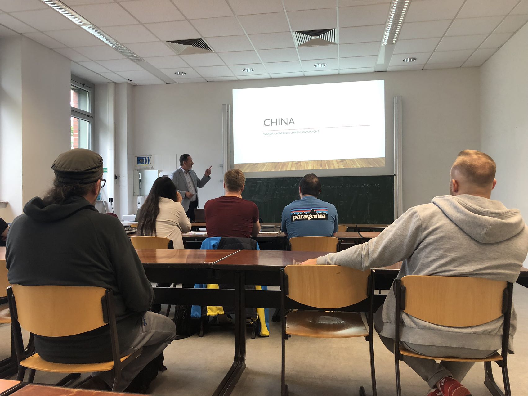 特里尔职业技术学校(Balthasar-Neumann-Technikum Trier,以下简称BNT)是特里尔-萨尔堡地区的公立学校,包括技术型高级中学的高中部和职业技术大学(含全日制和非全日制本科学历教育)两部分。在复活节前夕,BNT的教师胡斯特 (Eberhard Hüster) 先生联系到孔院并表示希望能够开展合作。孔院中方院长李毅博士迅速做出积极回应,参观了BNT的校区并商议制定了专门汉语课、空间/场地共享、专业讲座等一系列合作计划。在双方的共同努力下,专门汉语课在短短一个月内就得到了近10位学生的报名,顺利在计划时间内开课。