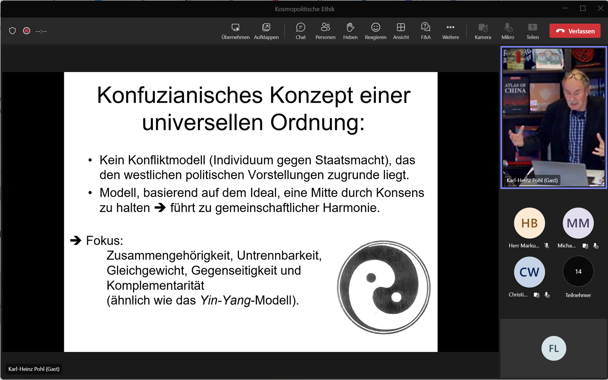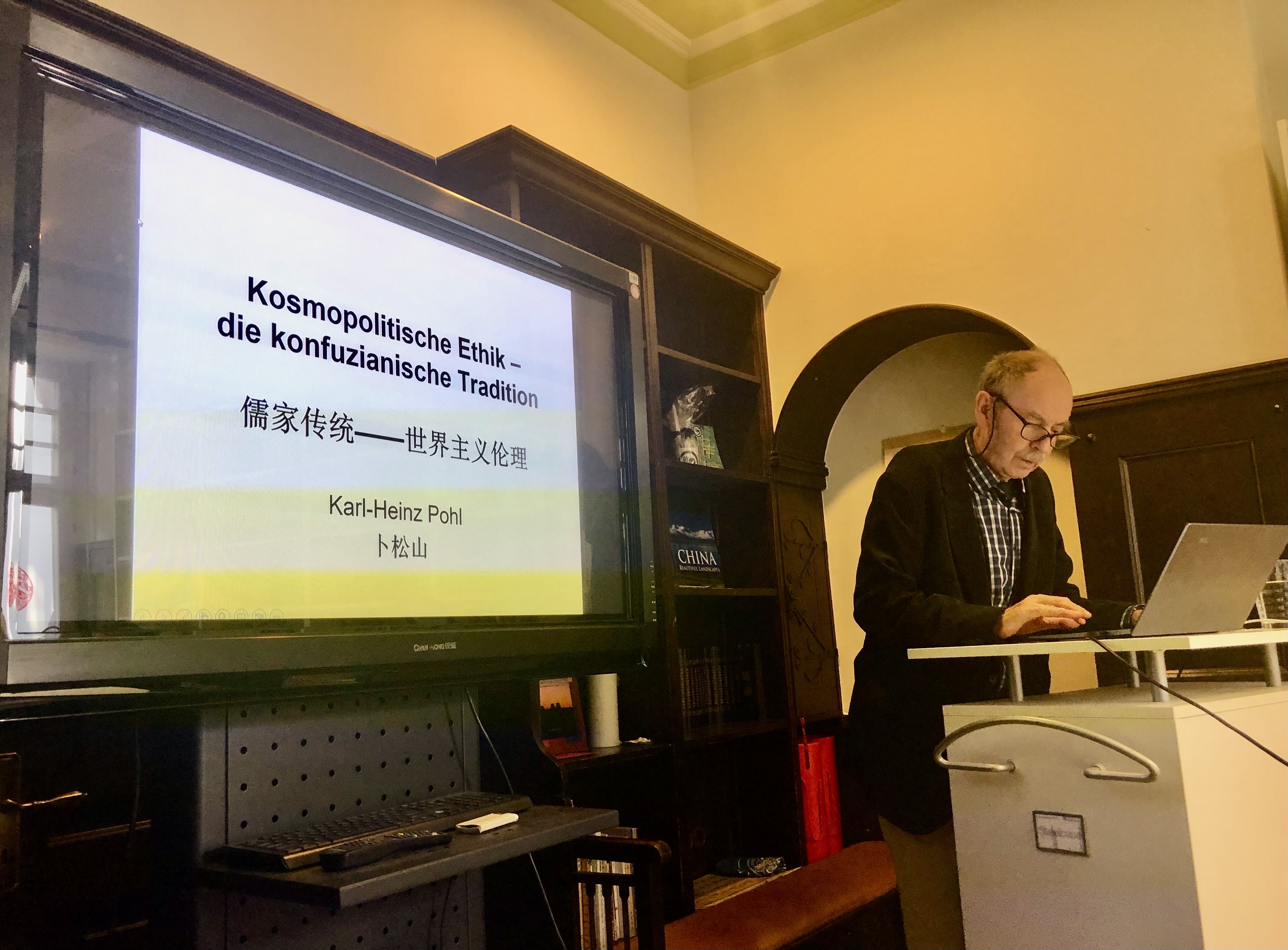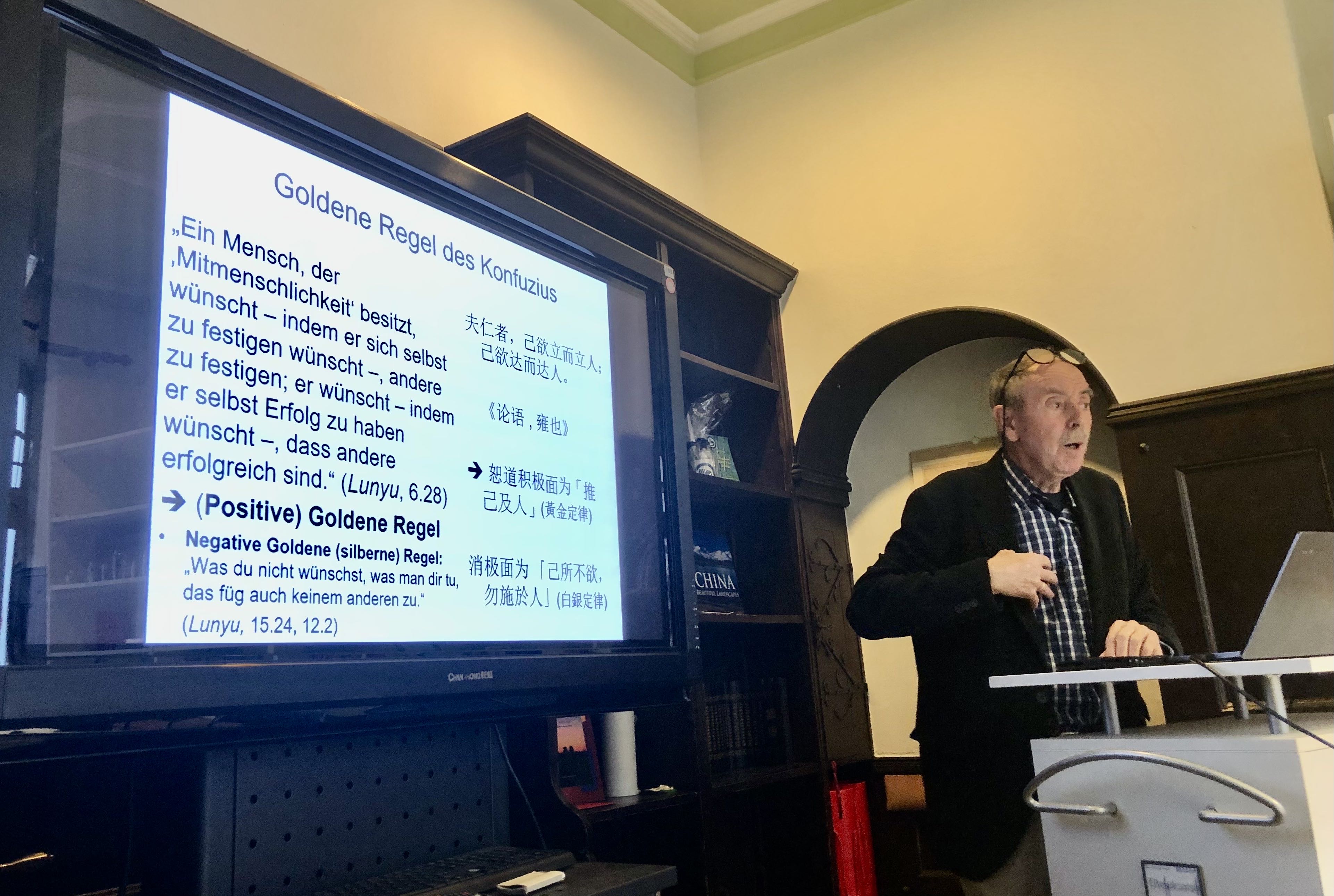 当地时间5月2日,由卜松山教授(Prof. i. R. Dr. Karl-Heinz Pohl)主讲的《天地与我共生——中国传统自然观四讲》第二讲之《儒家传统——世界性的伦理》时隔一周后如约开讲。此次讲座采用线上线下同步直播的方式,并配合录播以惠及更多听众。