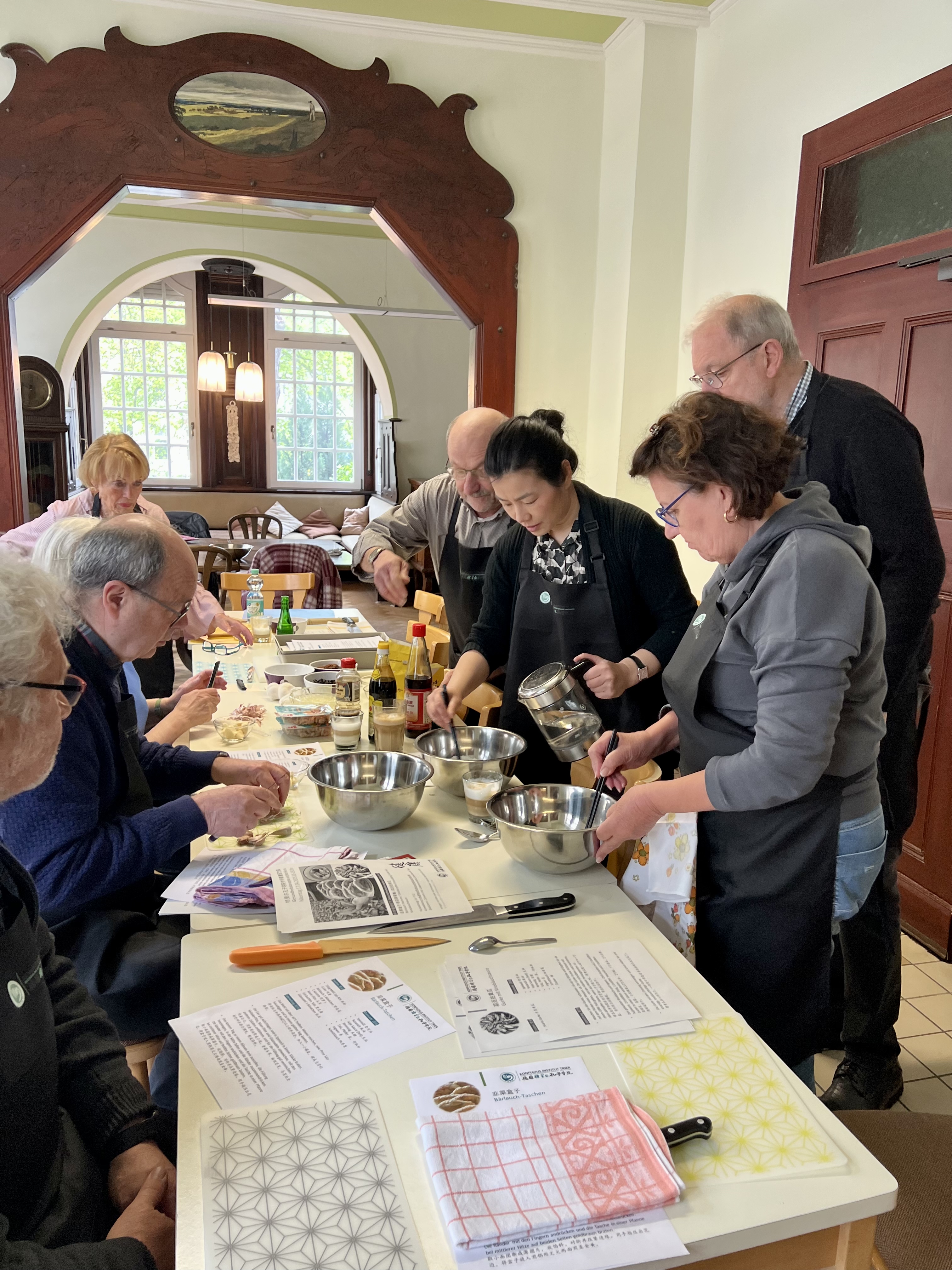 本系列课程将从四月持续到五月共五次,按照时令的推移还会采集艾草、槐花、荠菜等。多位年逾古稀的学员表示,这是第一次真的品尝野菜,没想到可以用最乡土的原料做出最地道的中餐,太奇妙了!而对于孔子学院的教师来说,这种共尝百草的相互信任也尤为珍贵!特里尔老年办公室致力于服务特里尔市及周边地区老年人,提供文化、健康、信息等课程并对接政府和社会机构,本次课程是特里尔孔院首次与老年办开展的课程合作。