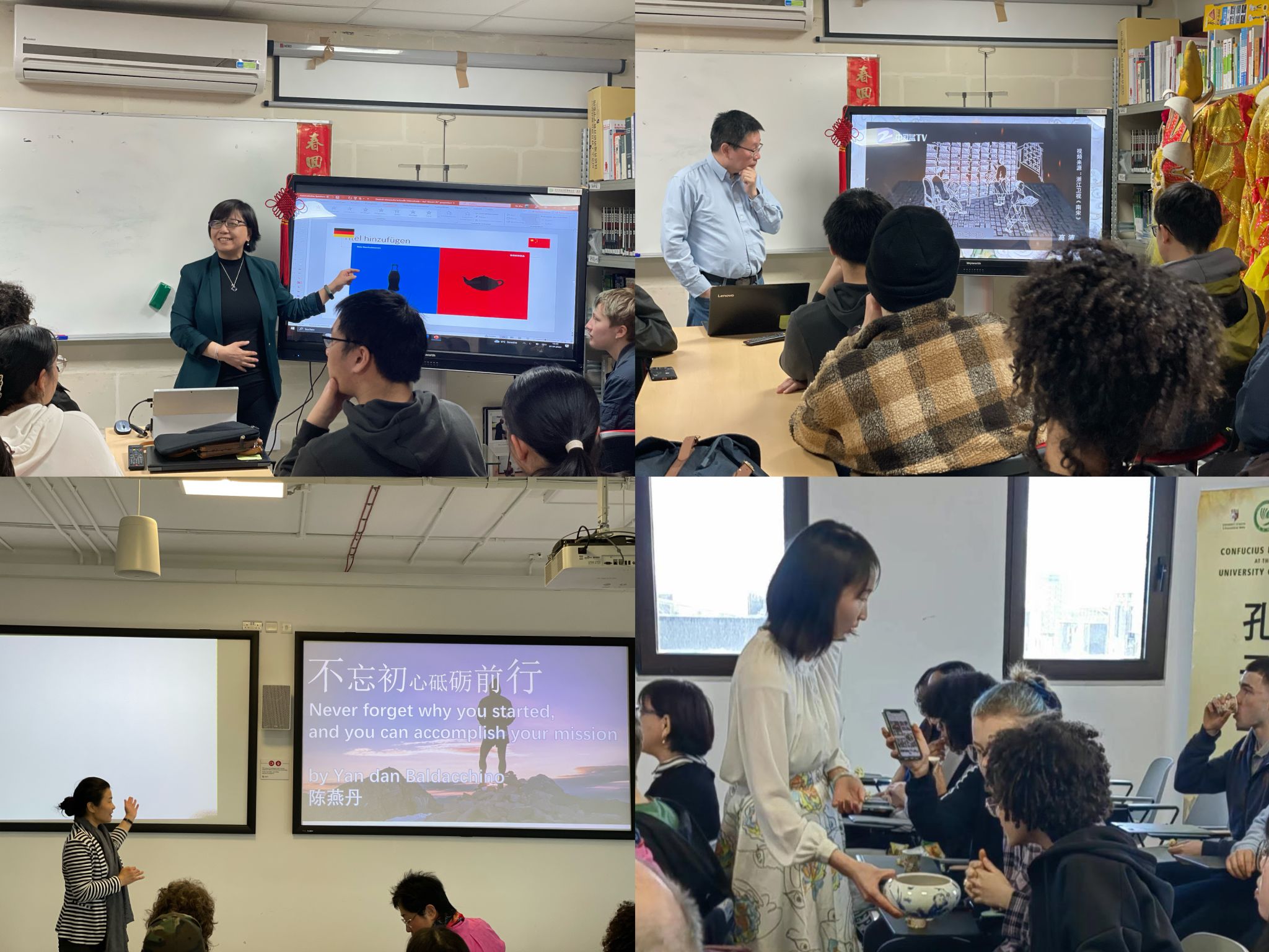 本次春令营以特里尔孔子学院外方院长卜松山教授的讲座《为什么学汉语》拉开序幕。卜教授以己为例,通过多种语言的对比分析,风趣幽默地讲解了在当今世界汉语学习的重要性和深远意义。春令营共涵盖十个版块:中国语言、神州茶艺、中华美食、中医中药、武术太极、古代科技、园林建筑、传统游艺、马耳他概况、中德文化差异。主题讲座均由“专家讲授”、“互动问答”两个基础部分组成,部分版块还包括了“亲身体验”这一环节。在地中海地区中医中心,中国第18期援马耳他医疗队的医生们为营员们进行了艾灸、拔罐、推拿等传统中医治疗方法的演示,并深入浅出地解释其疗法和疗效。首次近距离接触中医让大家兴奋不已,提问此起彼伏、人人跃跃欲试。营员们还在中医中心亲手包起了饺子,品尝中国传统美食。在马耳他大学的马耳他中医中心, 医生讲解了中医多元化的治疗方法, 大家对耳穴的介绍兴趣盎然,纷纷要求体验 。在医生的指导下,大家对照图片自行贴压穴位,还学习了眼保健操来缓解视疲劳。在武术太极课上,营员们不仅跟着师父们学习了气功和太极的基本姿势,还分小组学习了传统舞龙。在师父们的悉心指导下,大家很快就舞得像模像样,人人都沉浸在舞龙的快乐中,不愿下课。在茶艺课上,马耳他大学孔院教师孙怡以“茶”字为切入点向学生讲解“茶”的历史、类别、功效等,并通过“柴米油盐酱醋茶”等有关典故介绍茶在中国人生活中的重要作用。 营员们观茶色、闻茶香、品茶味,领略中国茶艺之美,品茗的同时又品尝了绿豆糕等中式点心。在中文课上,特里尔孔院教师马翠华巧妙地把语言学习的课堂变成了一场“密室逃脱”的闯关游戏。营员们按照语言水平被分成三组,闯关题目既有语言要素又有文化知识,闯关过程中既有单打独斗又有小组合作。在电化教具的帮助下,教室俨然变成了一间密室,大家都沉浸在闯关答题的紧张氛围里,营员们只有获取所有通关印章才可以逃脱密室,最后得到马老师的奖励。在“中国古代科技”的专题讲座中,来自德国萨尔州彩虹学校的高海滨校长利用诸多妙趣横生的短视频为营员们讲解了中国古代的“四大发明”,并例举“四大发明”在古今中外社会生活中的广泛应用。在中国文化差异的课堂上,来自德国莱法州美因茨安华学校的高鸿校长以中德双方对彼此的刻板印象为切入点,营员们在数次反转中深刻体会到了文化差异,并学习如何进行跨文化交际。在马耳他文化考察的旅程中,营员们不仅品尝到了马耳他的地道小吃——Pastizzi,更是上了一堂旅游汉语课。春令营除了为学生们准备了丰富多彩的课程与活动外,同时也为特里尔、马耳他孔院教师及卢森堡、德国的带队教师们提供了一场汉语教学研讨会, 会上特里尔孔院外方院长卜松山教授作了题为《跨文化对话的反思》的讲座,三国教师们在会上热烈交流经验、切磋技艺。