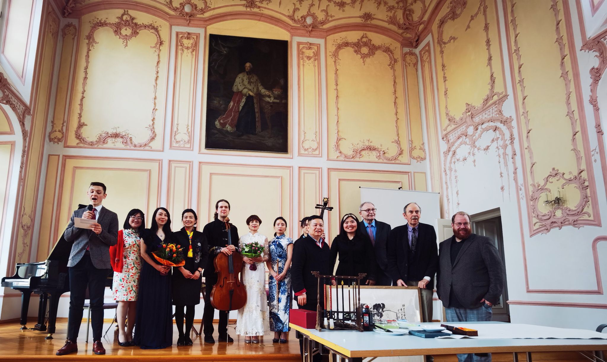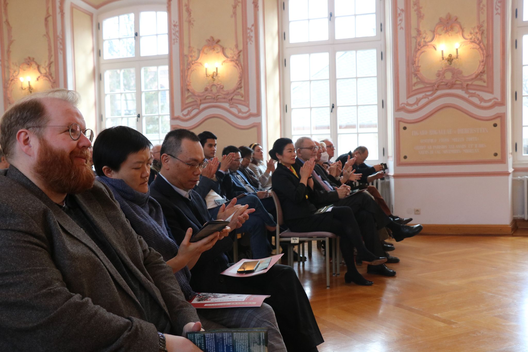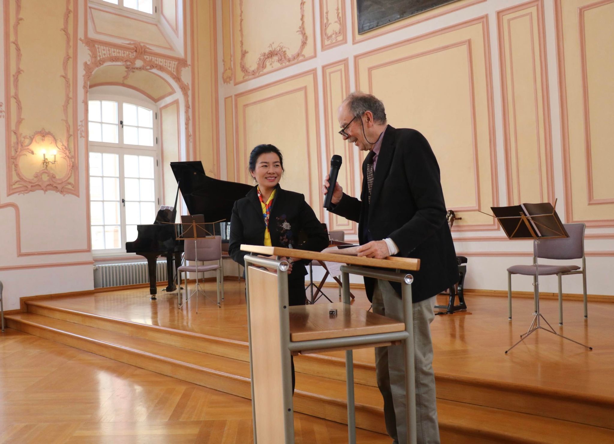 当地时间3月11日,德国特里尔孔子学院在特里尔市中心历史保护建筑博士大礼堂(Promotionsaula)举办“春回”中西交融音乐会,在这个大厅里,马克思获得了他的高中文凭。本场音乐会由特里尔孔子学院主办,特里尔市政府和特里尔德中友协协办。特里尔市文化市长Markus Nöhl, 特里尔德中友协会长、特里尔孔子学院理事长Peter Dietze,中国驻法兰克福总领馆教育文化处林常青主任、薛云领事,厦门大学艺术学院郑盛龙教授,特里尔孔子学院中外方院长等人出席音乐会。