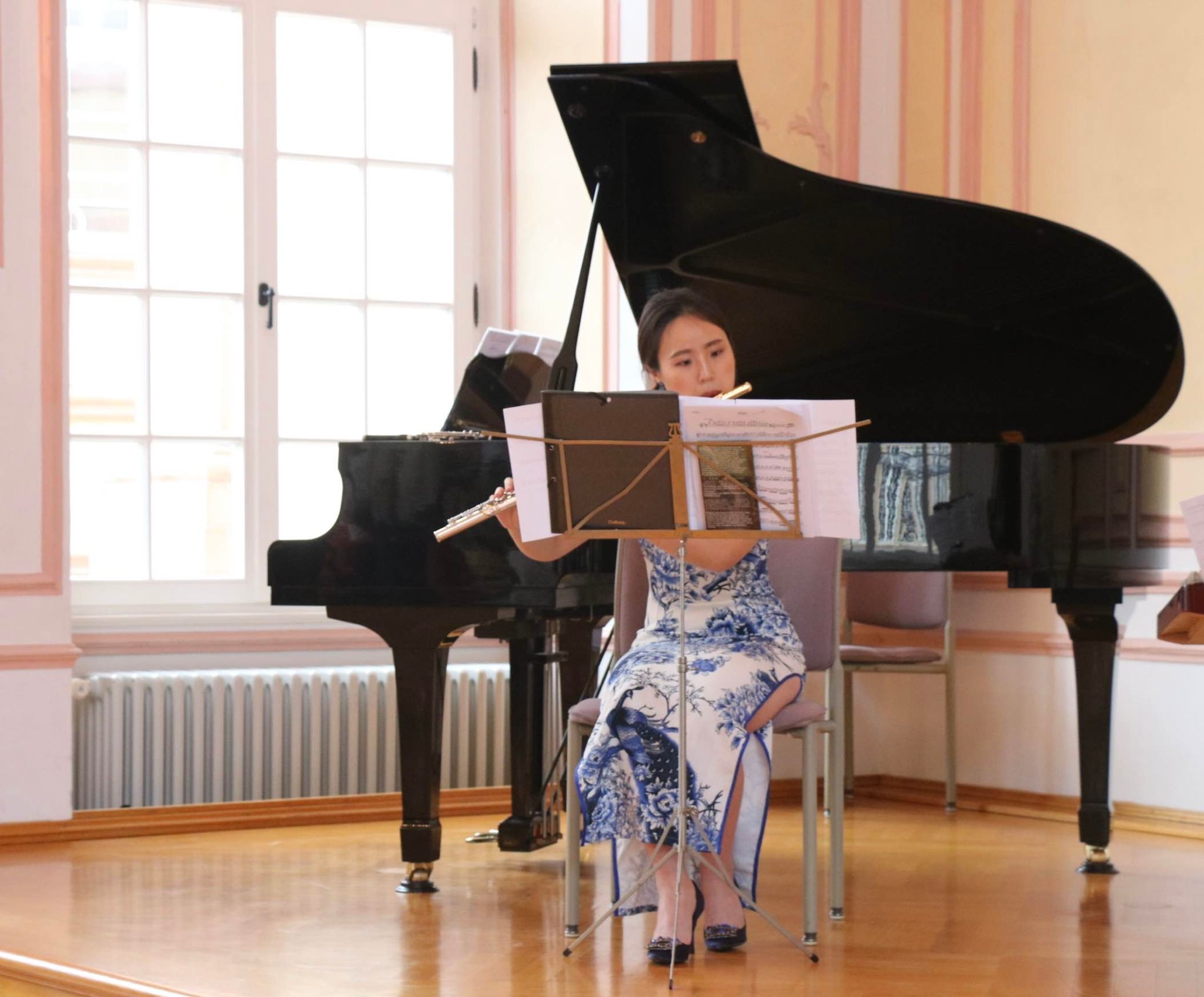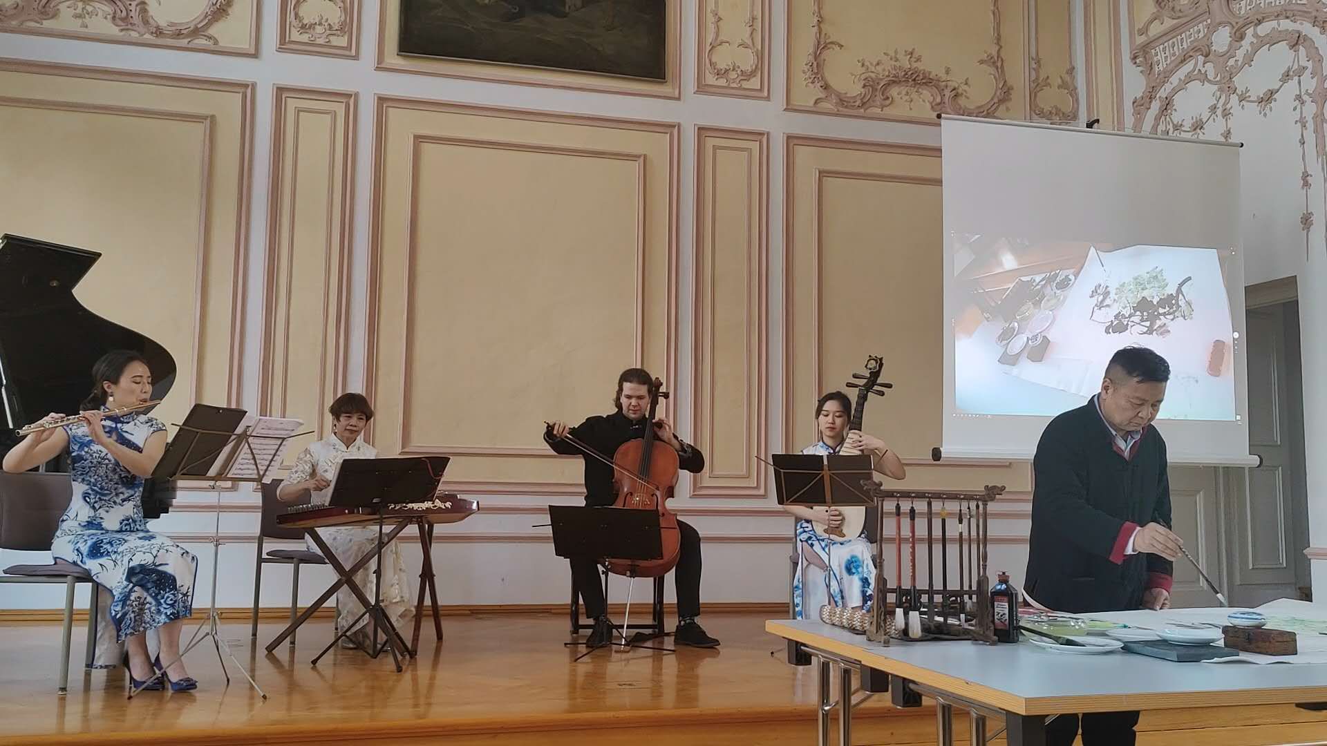 来自“风雅亚欧音乐交流协会”的“弦·风”四重奏组合为现场观众献上了一场中西交融听觉盛宴。“弦·风”四重奏由来自中法两国的四位优秀音乐家共同演奏,主打乐器为扬琴、琵琶、大提琴和长笛。音乐会选曲精妙:曲目既包括中国传统民乐《花好月圆》、《幸福年》、《彝族舞曲》、《金蛇狂舞》、《鸿雁》等,又包括德国观众耳熟能详的德国名曲《咏叹调》、意大利的《四季》、丹麦的《探戈》、法国歌剧选段《卡门》 等。“弦·风”还为特里尔孔院的合作伙伴厦门大学、 特里尔的友城厦门市专门倾情打造了《厦门大学校歌》和《鼓浪屿之波》的融合曲目,并在音乐会当天首次奏响,用音乐描绘鹭岛的美好。为了回应“春回”的音乐会主题,“弦·风”还特别演奏了中国台湾名曲《望春风》,应时应景应情。