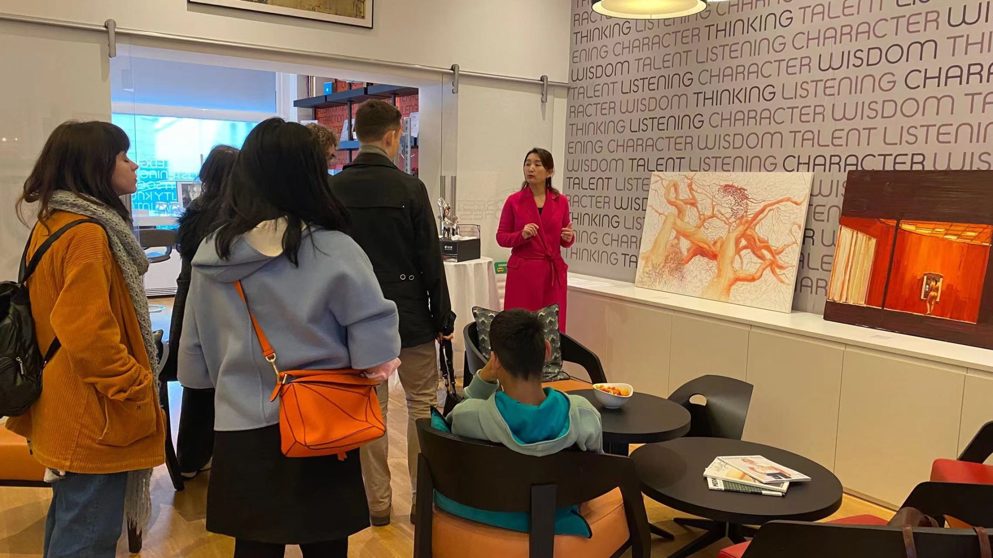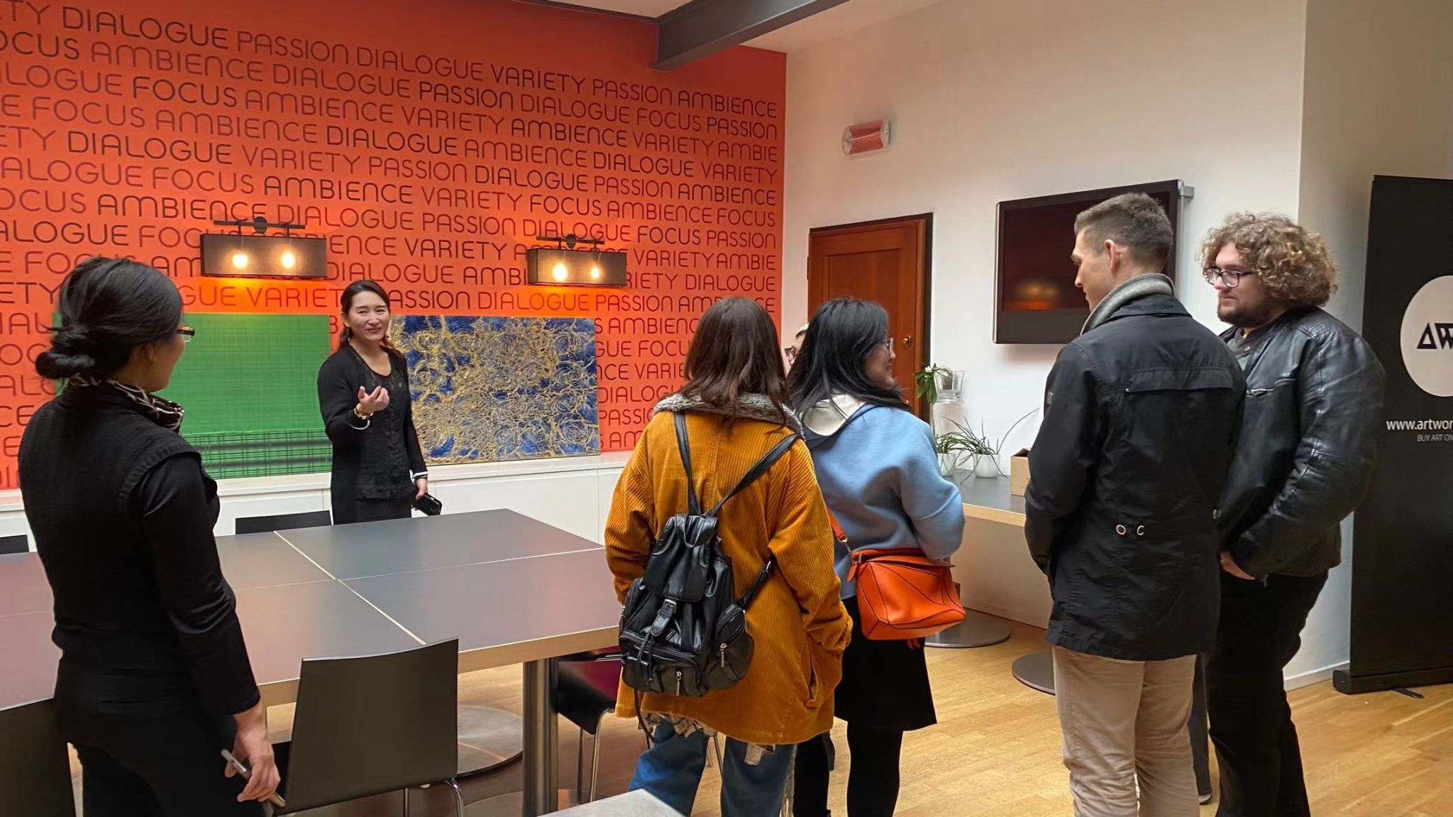 观展过程中孔院师生各抒己见,表达个人对作品的理解,之后又与寻雁女士以及孔子学院院长李毅博士座谈交流了中国与欧洲的当代艺术。