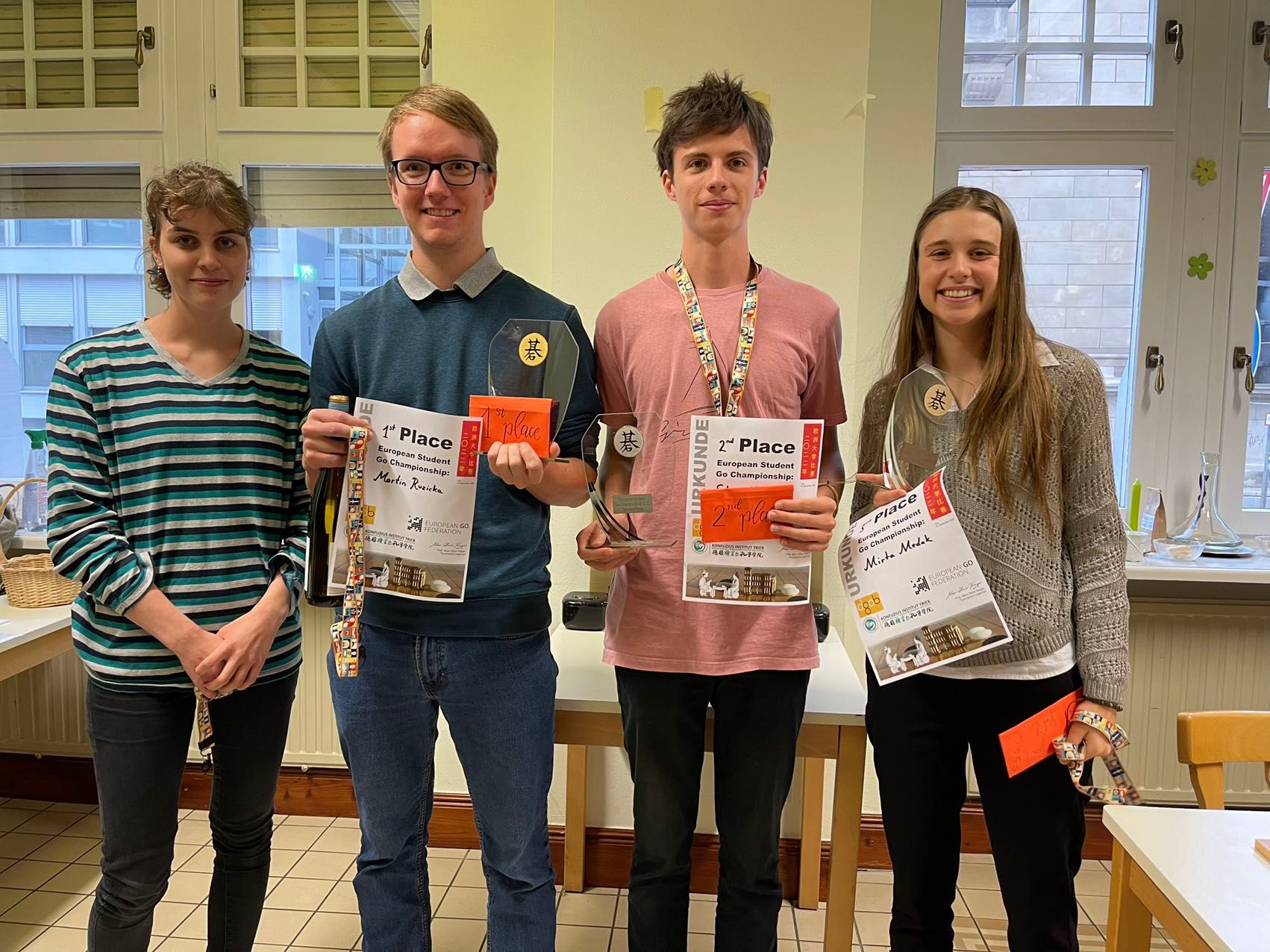 格分经纬,子有黑白。局方而静,棋圆而动。经过两天的五轮比赛,女子冠亚军分别由来自克罗地亚的Mirta Medak (欧洲二段)和来自德国海德堡的Isabel Donie (欧洲二段)获得。男子冠亚军分别由来自德国达姆施塔特的Martin Ruzicka (欧洲四段)和来自罗马尼亚的Elian Grigoriu (欧洲六段)获得。除获奖金奖杯等奖品之外,这四位选手获得资格被邀请赴日本参加世界大学生男女混双联棋大赛。