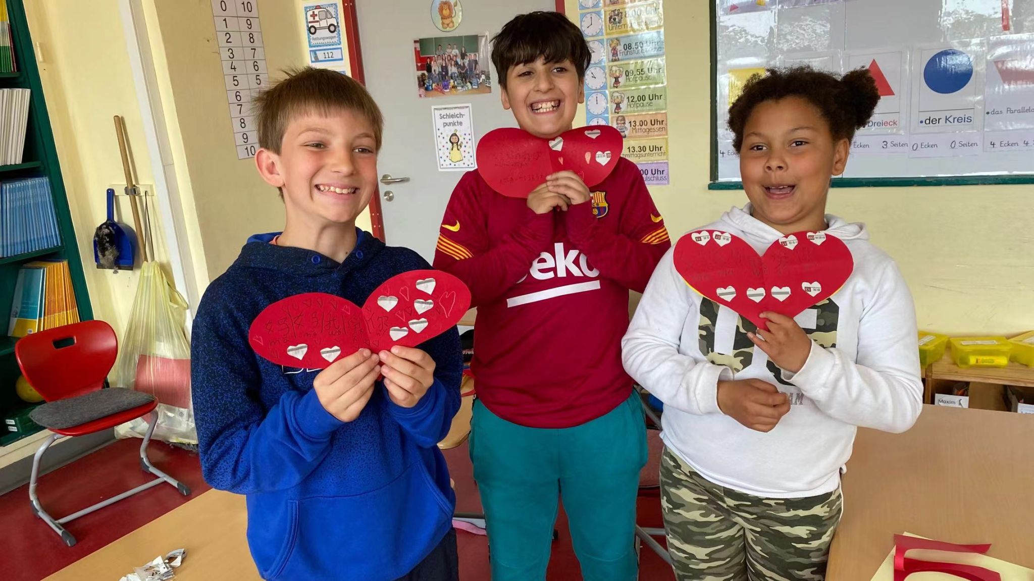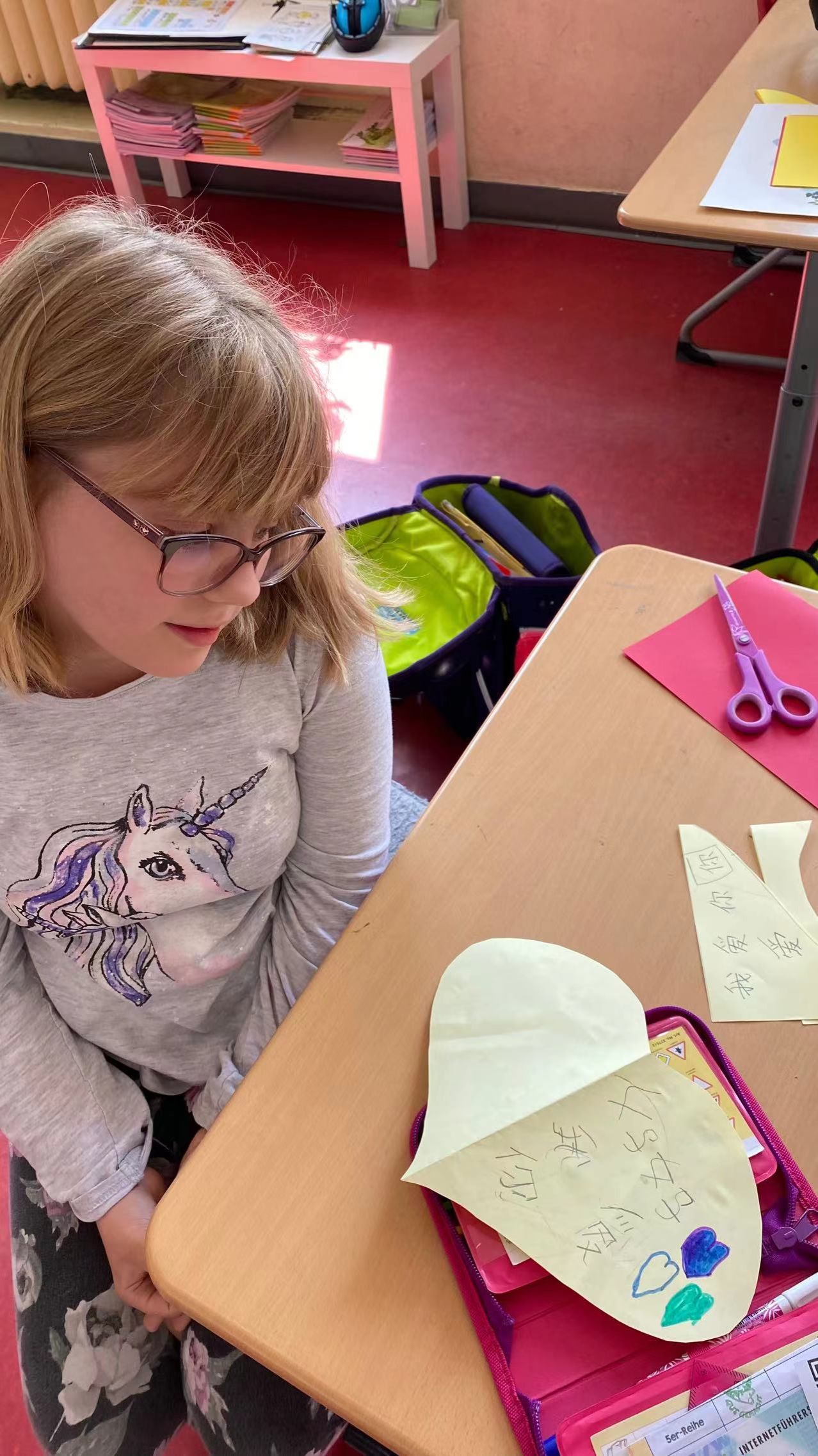 当地时间54日,特里尔马蒂亚斯小学开展了一堂别开生面的中文课。为迎接本周日母亲节的到来,十名小学生在特里尔大学孔子学院本土教师刘希玲老师的带领下,巧用彩色卡纸和旧报纸,制作了富有创意且饱含深情的中文贺卡。