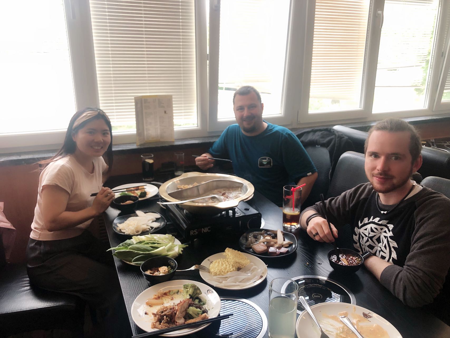 火锅是另一个重要的体验项目,钟老师带着学员们前往当地的中餐馆。学员们不仅学会了用筷子,认识了不少中国特色的食材,品尝了美食,还抓住机会练习了汉语表达和汉字,了解了中国的饮食和餐桌文化。
